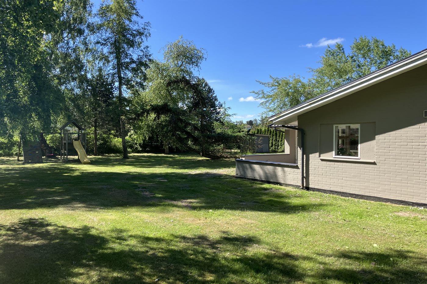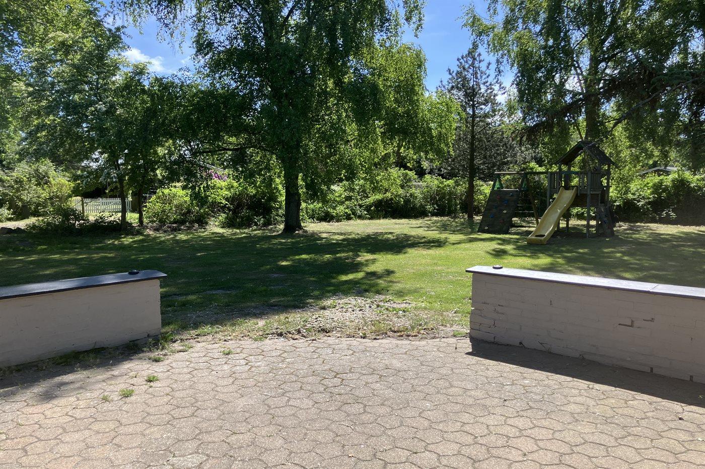 Ferieboligen er beliggende på en 1183 m² stor havegrund. Der er 80 m til havet. Nærmeste forretning er beliggende i en afstand af 2000 m. Til ferieboligen hører 20 m² terrasseareal. Desuden er der 15 m² overdækket terrasse. Der er redskabsrum. Gynge. Legetårn. Rutchebane. Parkering ved ferieboligen. Parkeringsmulighed for 2 biler i indkørslen.