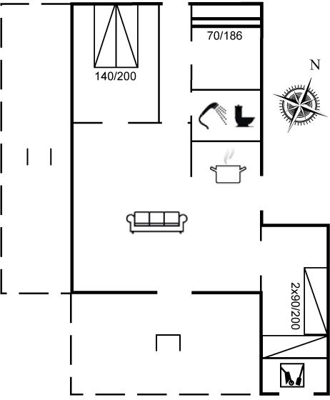 Sommerhuset egner sig til 6 personer. 1 af sovepladserne er kun egnet til større børn (4-11 år). Ferieboligen er på 64 m² og er bygget i 1979. I 2009 gennemgik ferieboligen en delvis renovering. Det er tilladt at medbringe 2 husdyr. Frysekapacitet på 10 liter. Der er desuden brændeovn. Til de små er der 1 stk. barnestol.