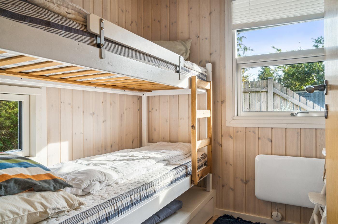 Der er i alt 3 soveværelser. Sovepladserne fordeler sig på: 2 sovepladser i dobbeltseng. 2 sovepladser i enkeltsenge. 2 sovepladser i køjeseng.