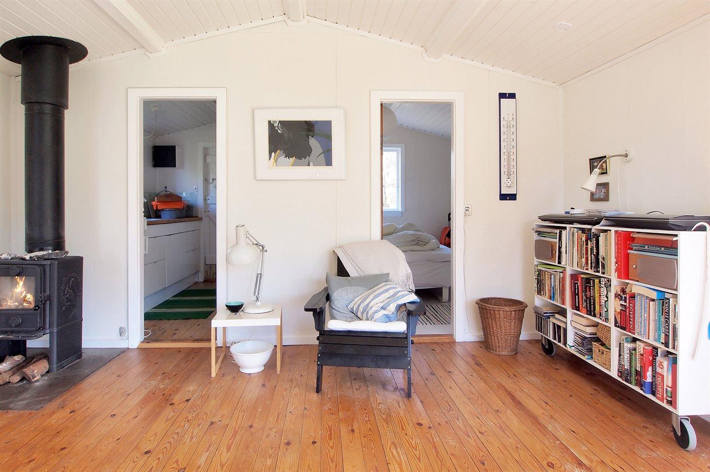 Hyggeligt lille sommerhus beliggende nær børnevenlig badestrand. Bemærk: den ene soveplads befinder sig på sovesofa i opholdsstuen.