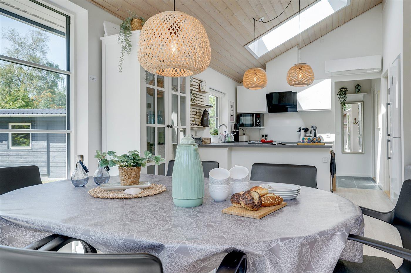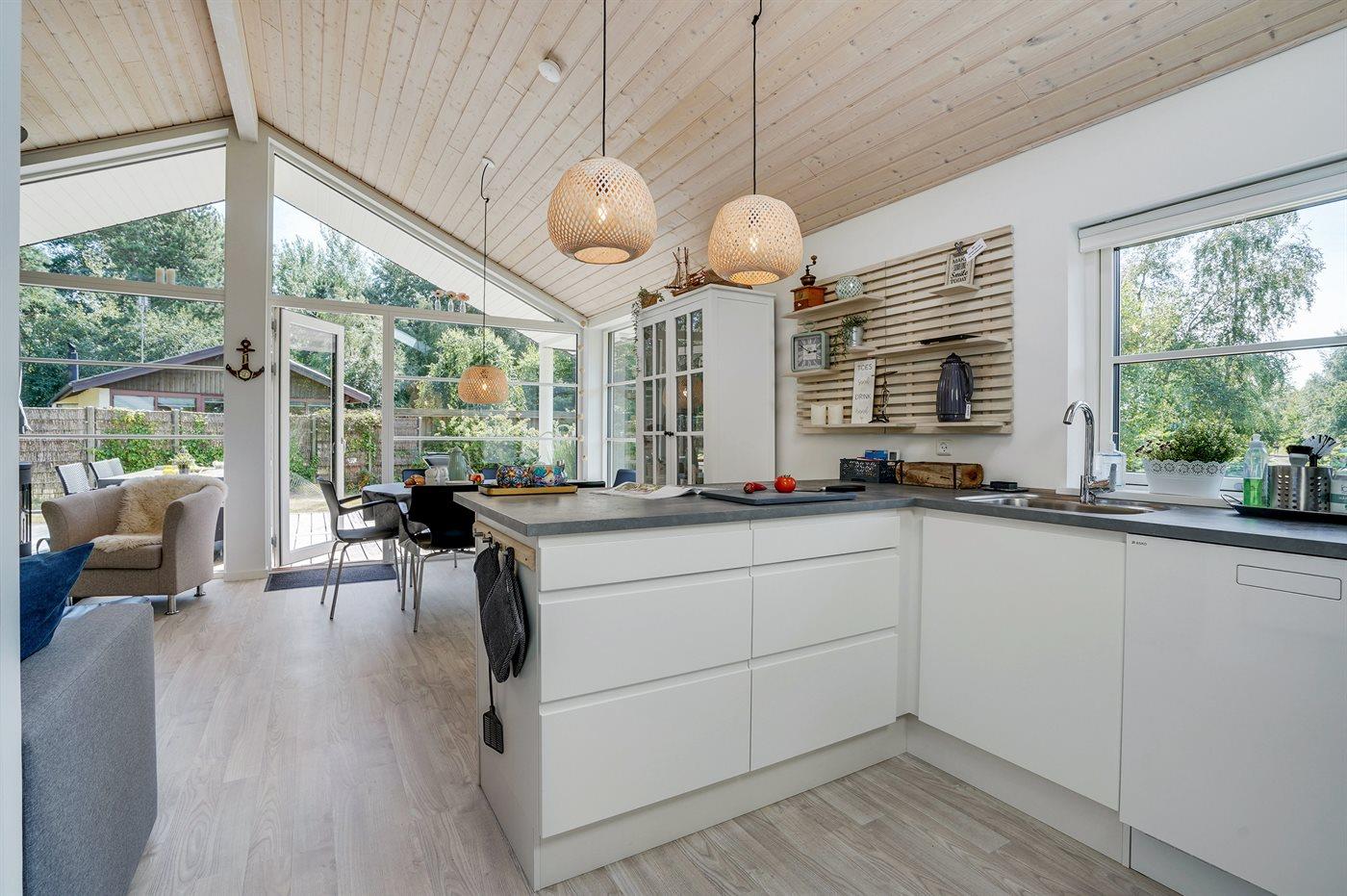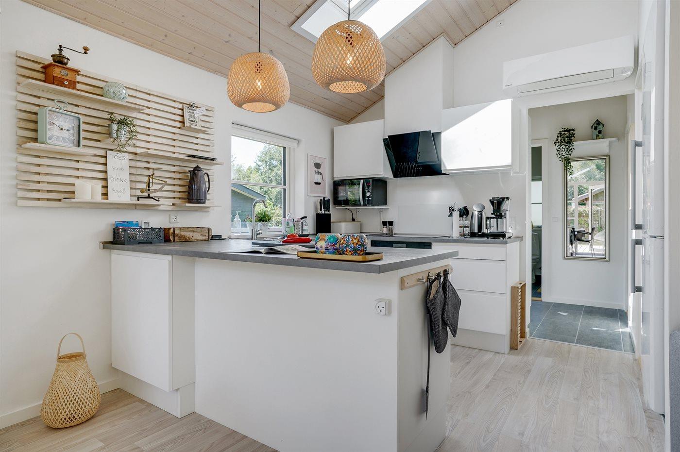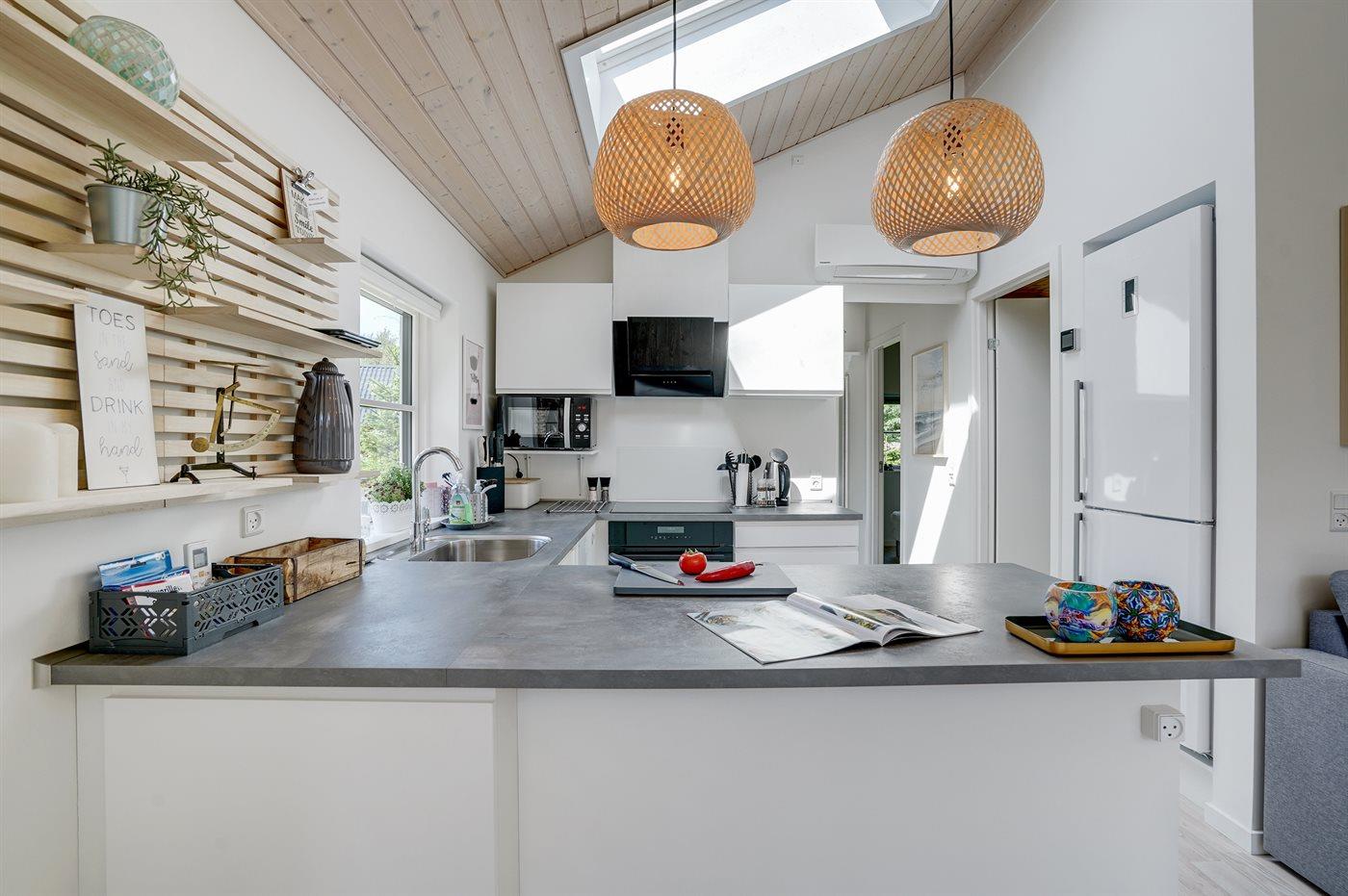 Køkkenet er udstyret med 1 køleskab. Der er 4 induktionskogeplader, varmluftovn, mikrobølgeovn, Airfryer samt opvaskemaskine.