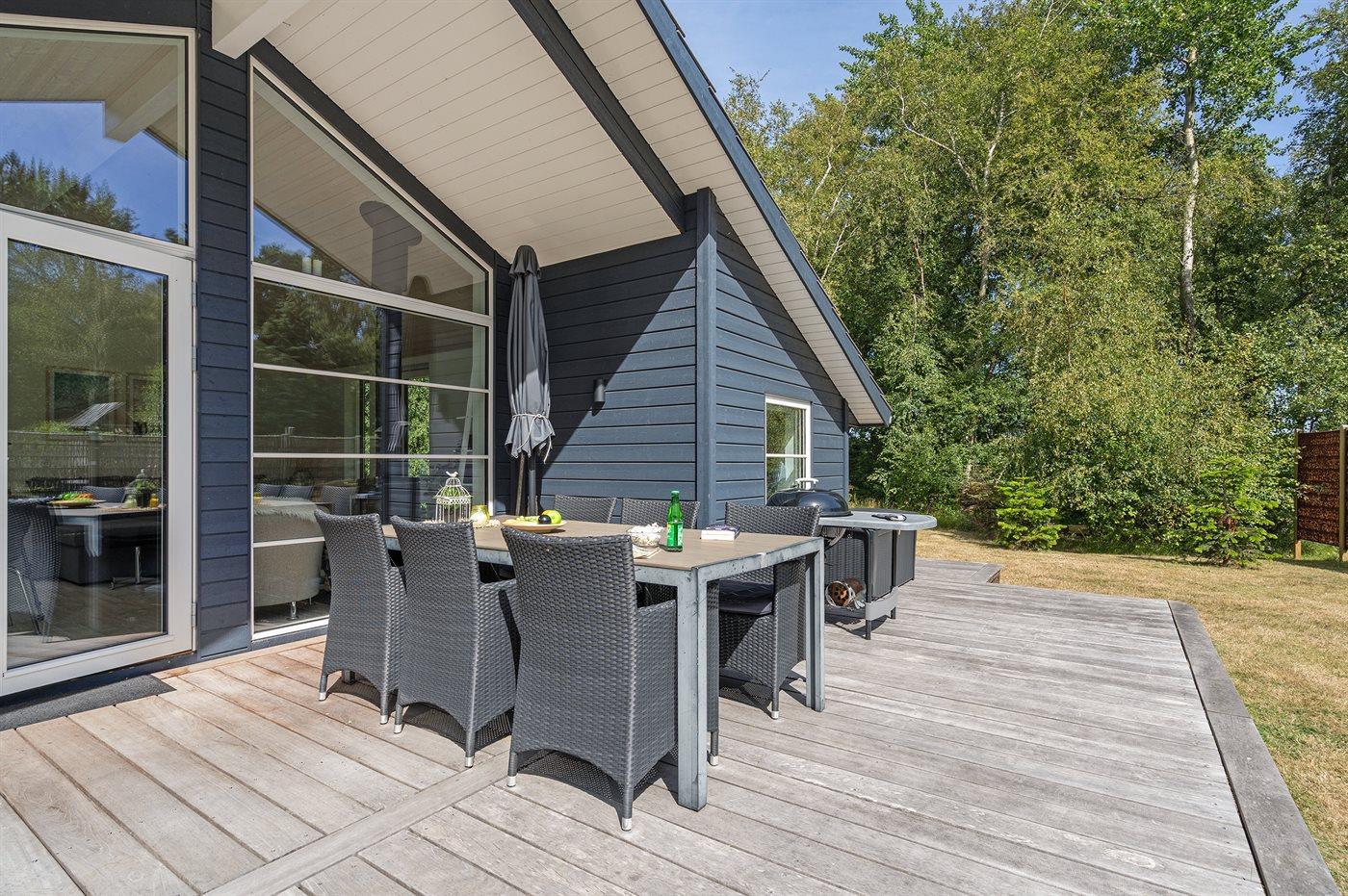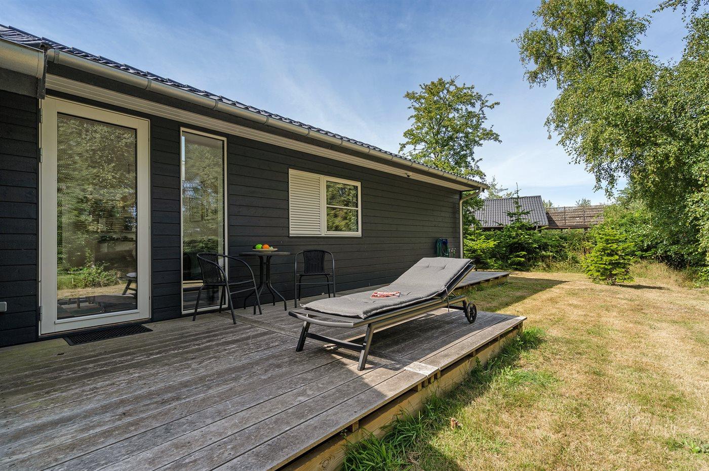 Ferieboligen er beliggende på en 1845 m² stor naturgrund. Der er 50 m til havet. Nærmeste forretning er beliggende i en afstand af 3000 m. Til ferieboligen hører åbent terrasseareal. Desuden er der overdækket terrasse. Bålsted. Der er carport til rådighed. Parkering ved ferieboligen.