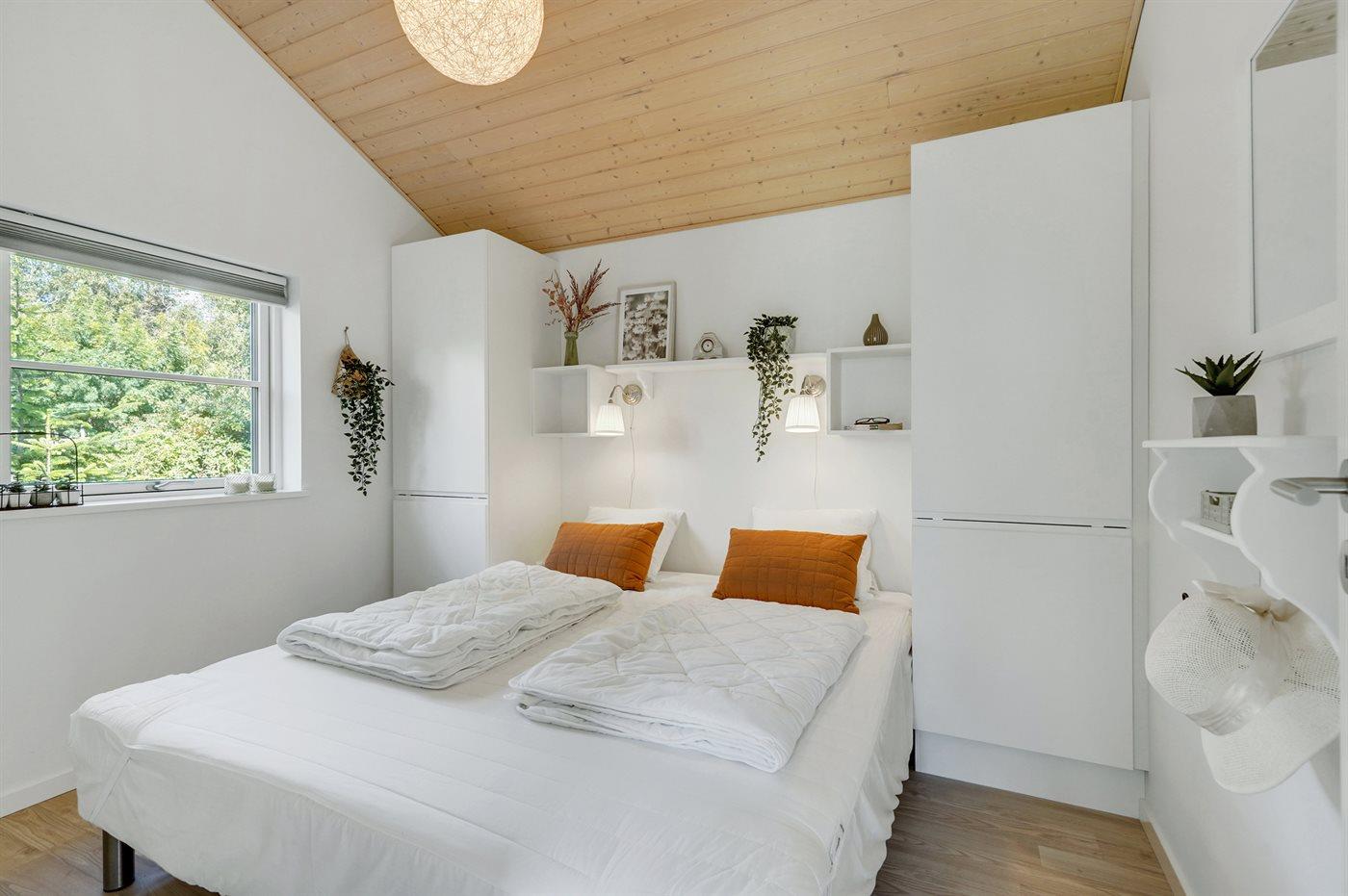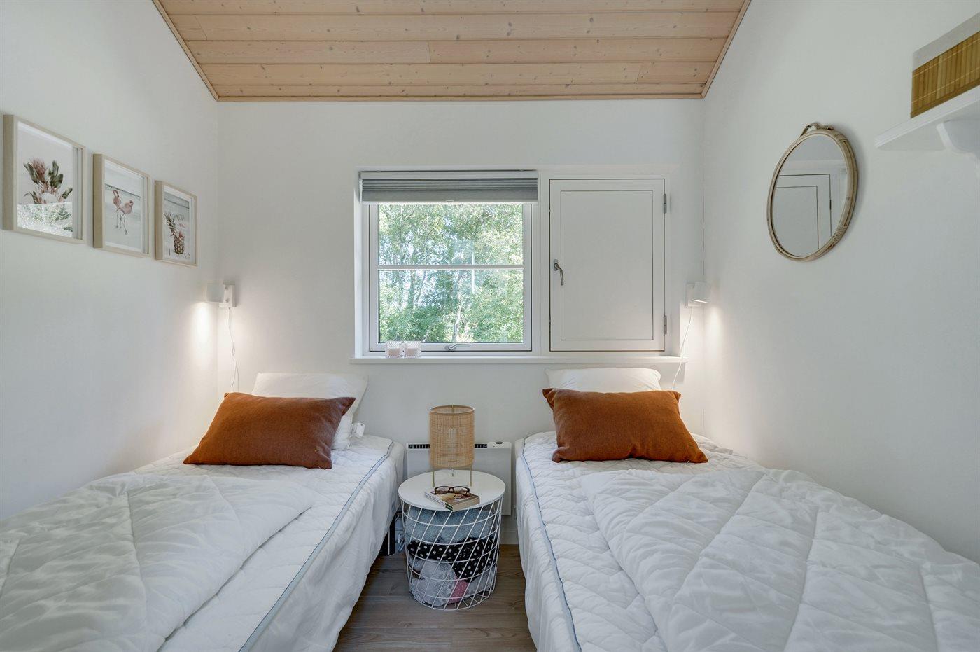 Der er i alt 2 soveværelser. Sovepladserne fordeler sig på: 2 sovepladser i dobbeltseng. 2 sovepladser i enkeltsenge. 2 sovepladser i alkove. 2 af disse sovepladser befinder sig i stuen.