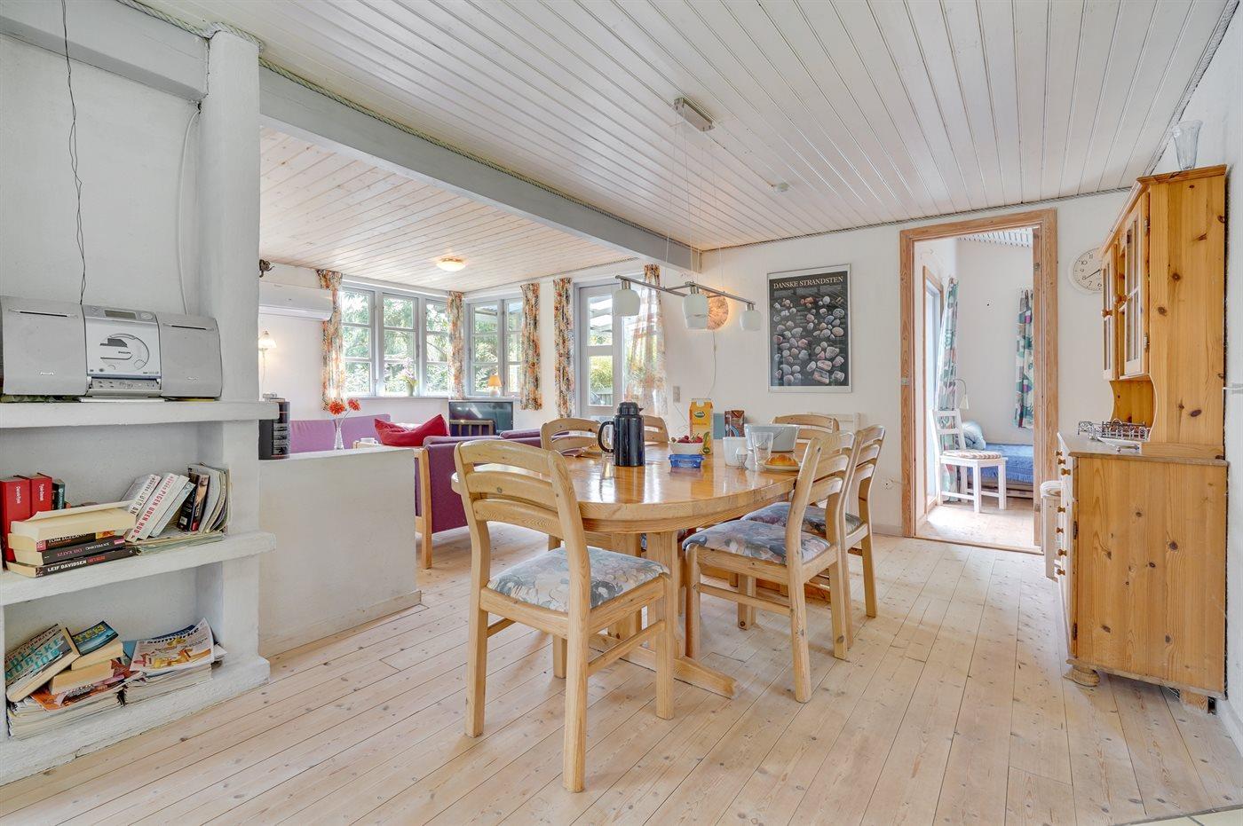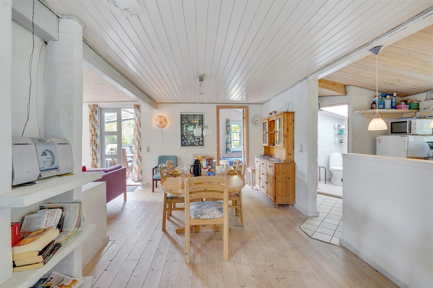 Et charmerende sommerhus med udenomsarealer, der giver mulighed for både sol, skygge og udendørsaktiviteter. Med kun 300 meter til en af de skønneste sandstrande i Danmark, er der mulighed for at få sig en dukkert i bølgen blå, nyde solen eller for at gå en aftentur langs stranden.