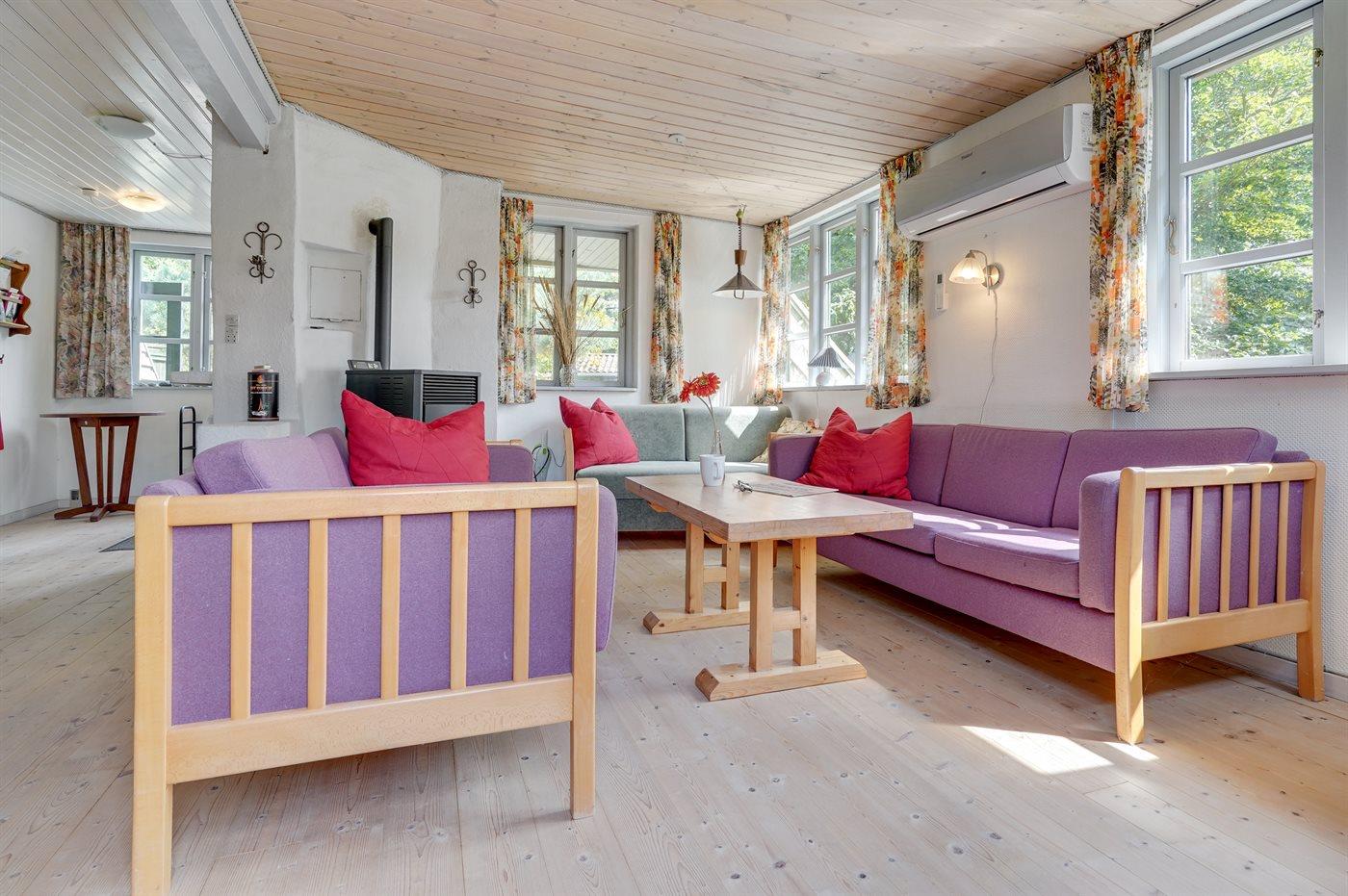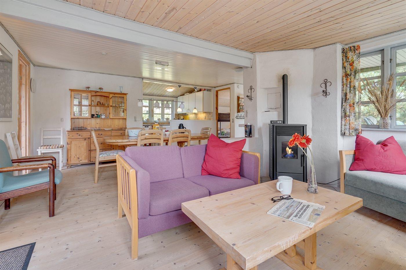 Sommerhuset egner sig til 6 personer. 2 af sovepladserne er kun egnet til større børn (4-11 år). Ferieboligen er på 70 m² og er bygget i 1960. Det er tilladt at medbringe 2 husdyr. Ferieboligen er udstyret med 1 energivenlig luft til luft varmepumpe. Ferieboligen har vaskemaskine. Tørretumbler. Frysekapacitet på 30 liter. Endvidere træpilleovn.