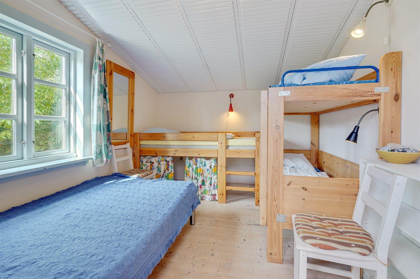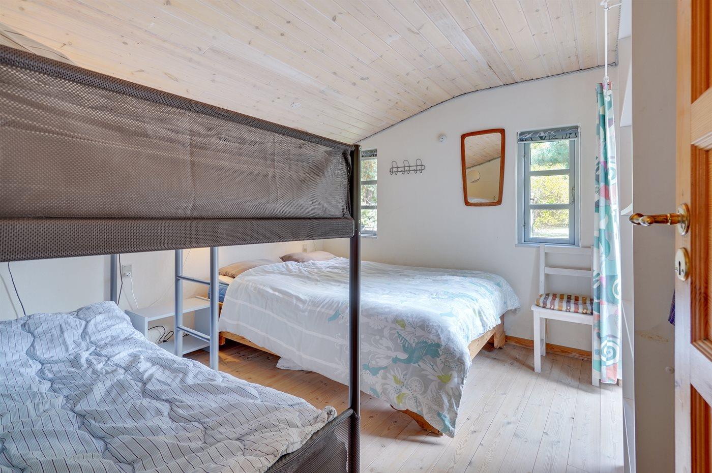 Der er i alt 2 soveværelser. Sovepladserne fordeler sig på: 2 sovepladser i dobbeltseng. 1 soveplads i enkeltseng. 3 sovepladser i køjesenge.