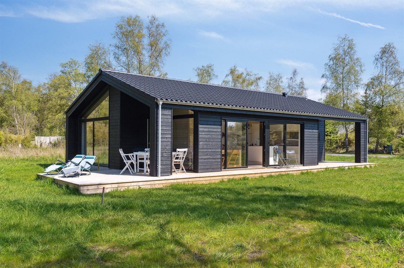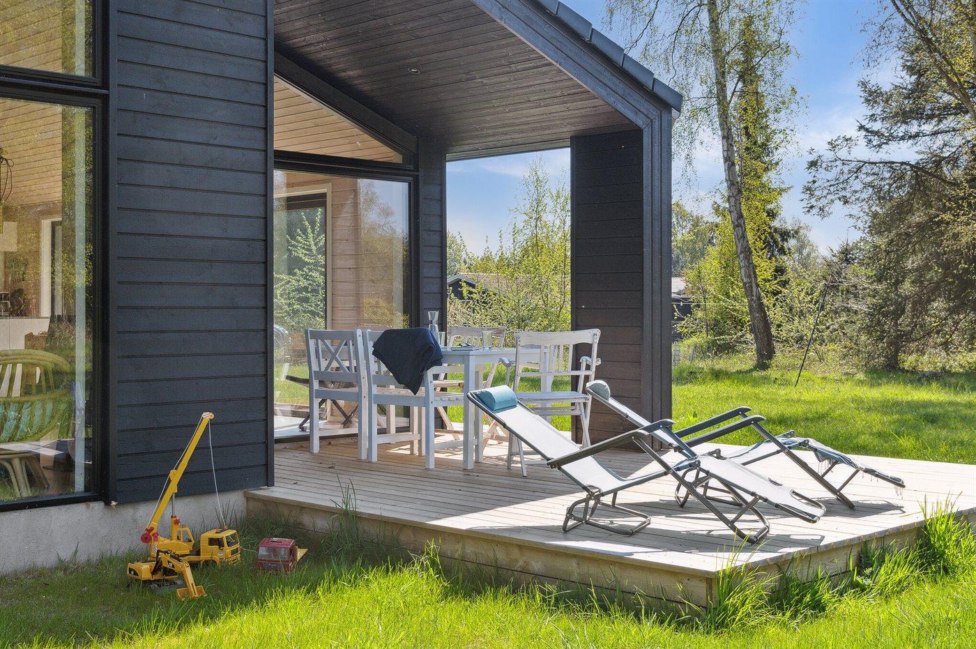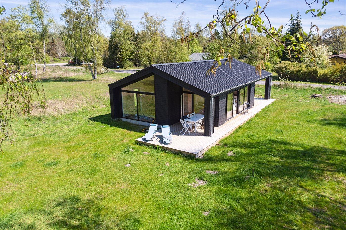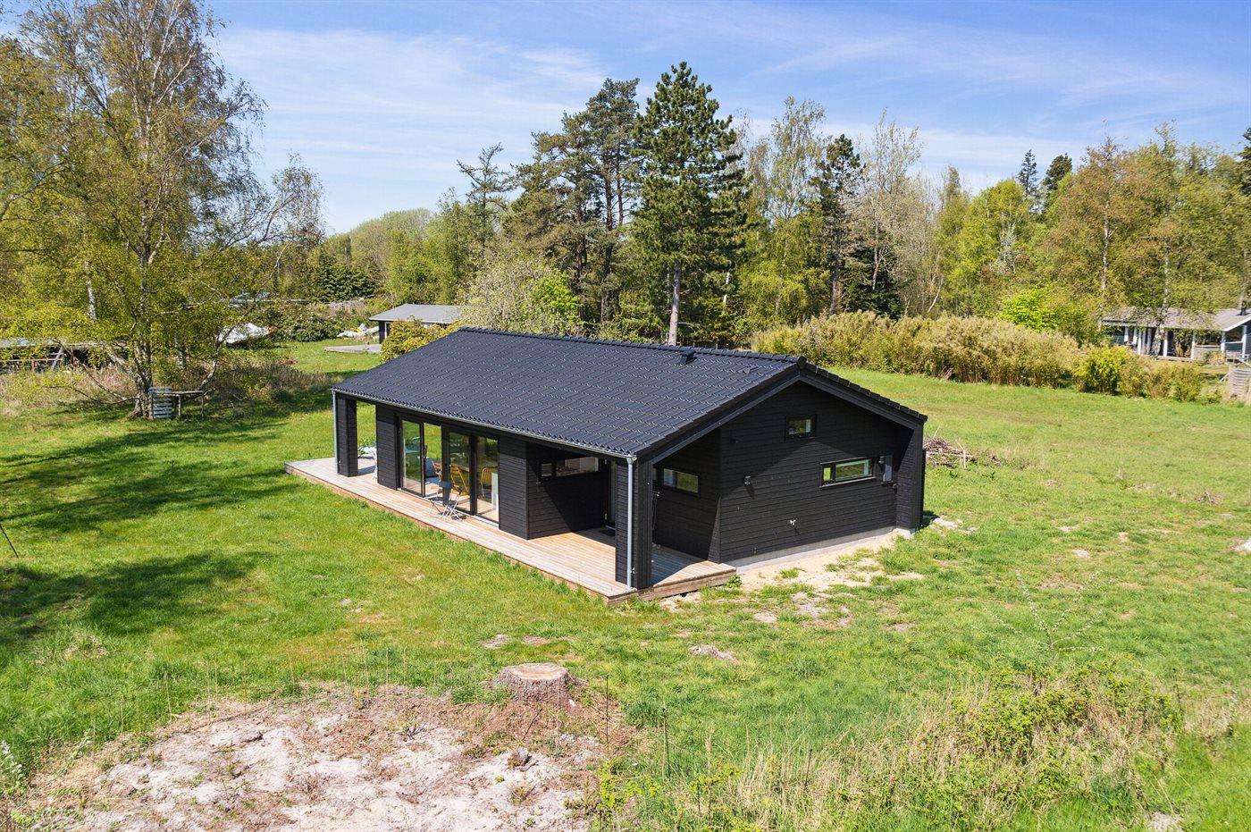 Moderne sommerhus fra 2022 nær børnevenlig strand med stor naturgrund og mange faciliteter for hele familien.