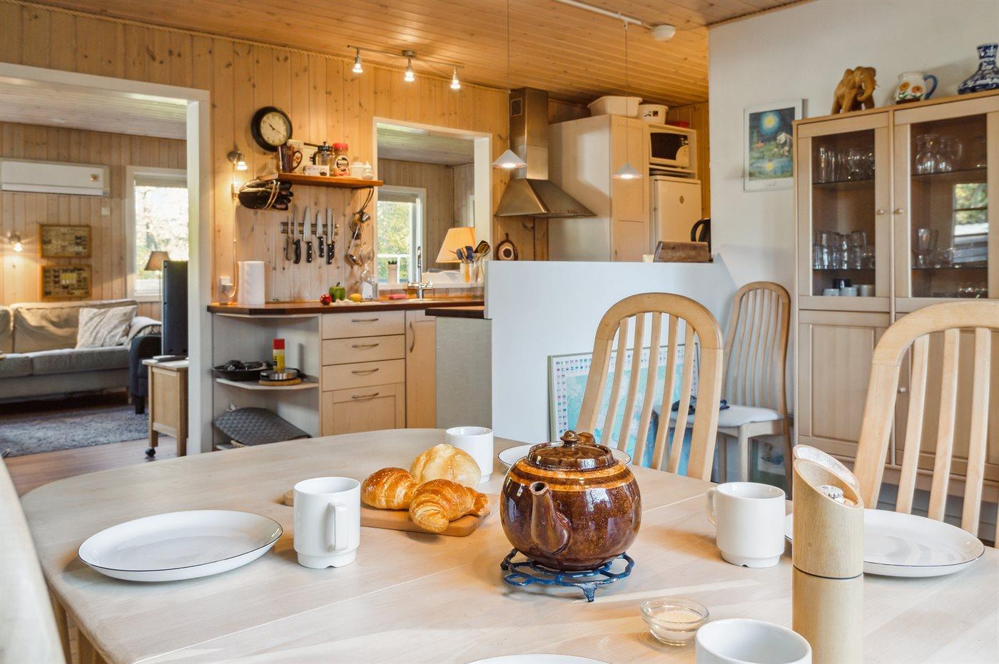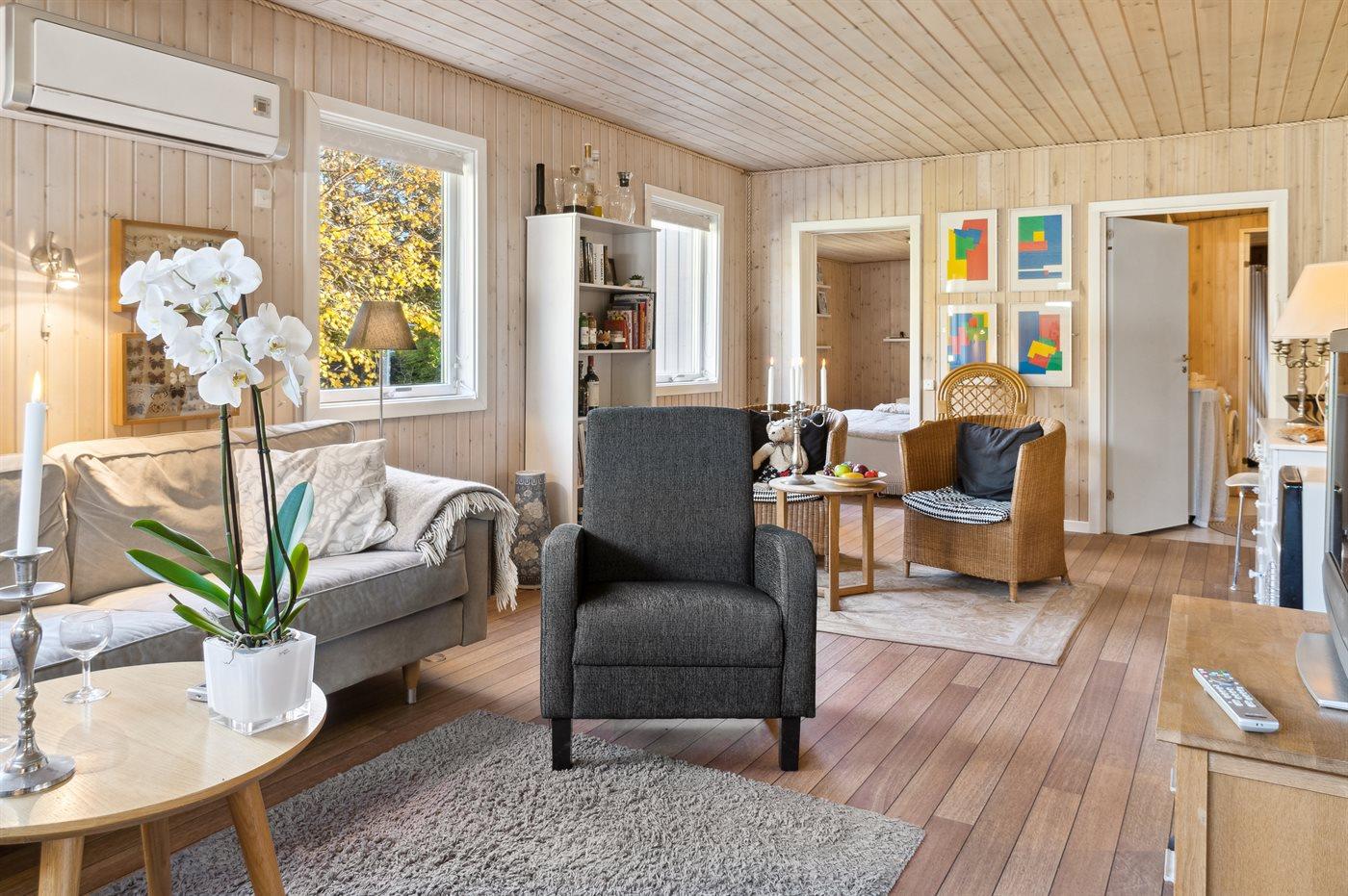 Dette pæne sommerhus ligger i et roligt område - nær skøn og børnevenlig badestrand. På grunden er der god plads til boldspil og leg.