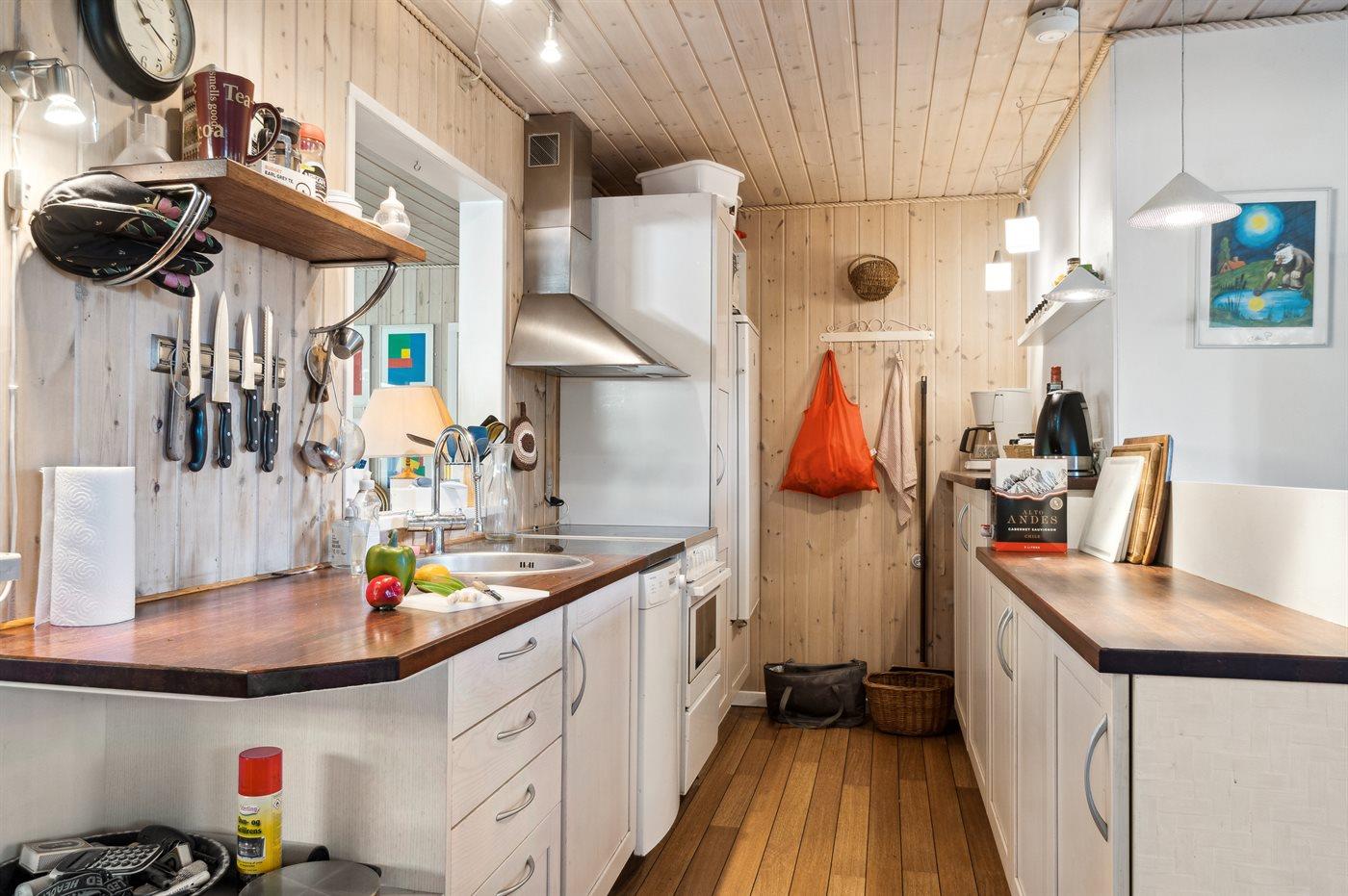 Køkkenet er udstyret med 2 køleskabe. Der er 4 keramiske kogeplader, varmluftovn, mikrobølgeovn samt opvaskemaskine.