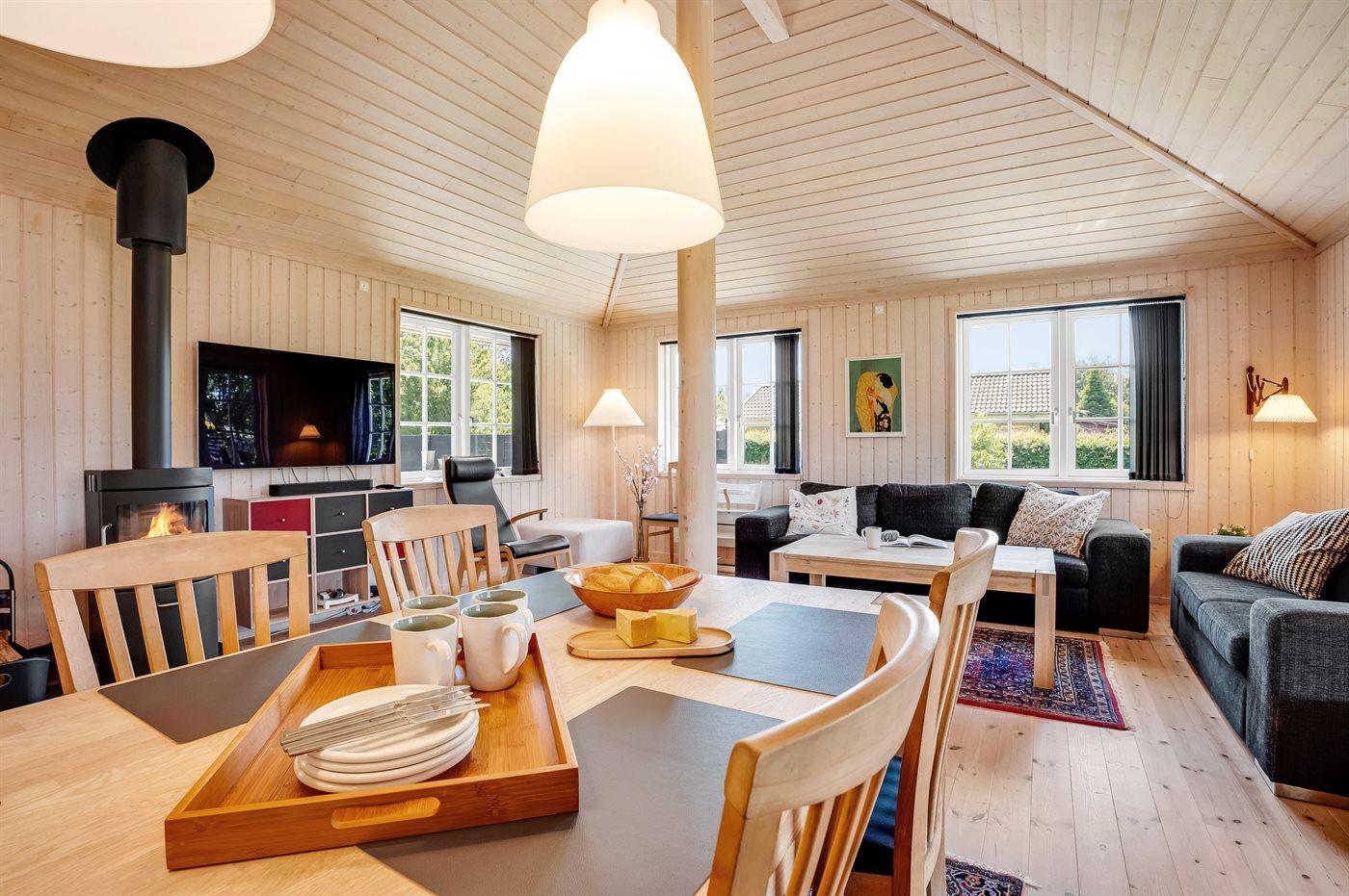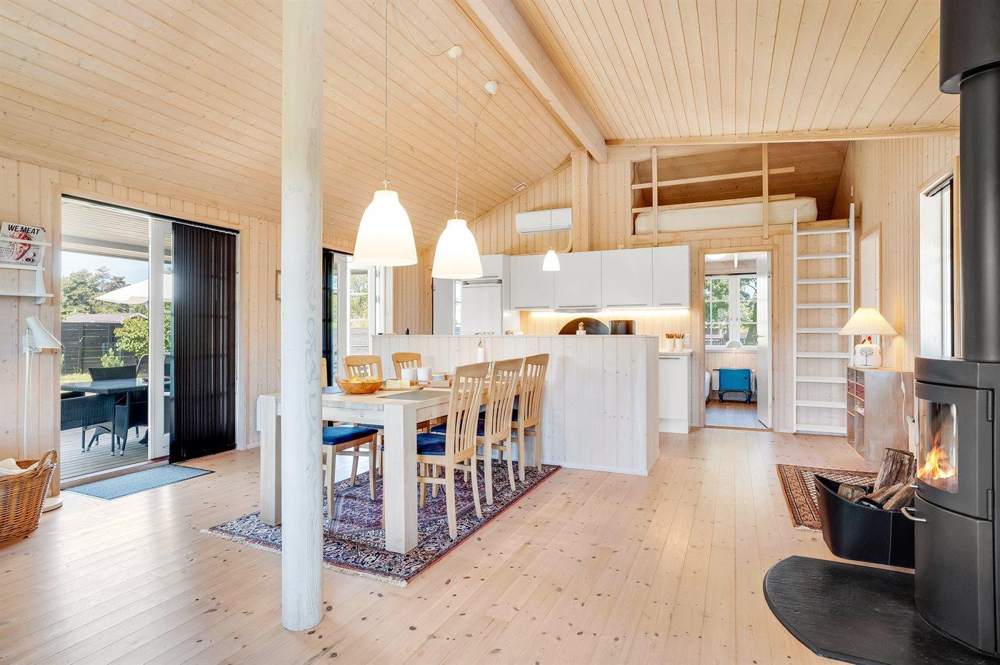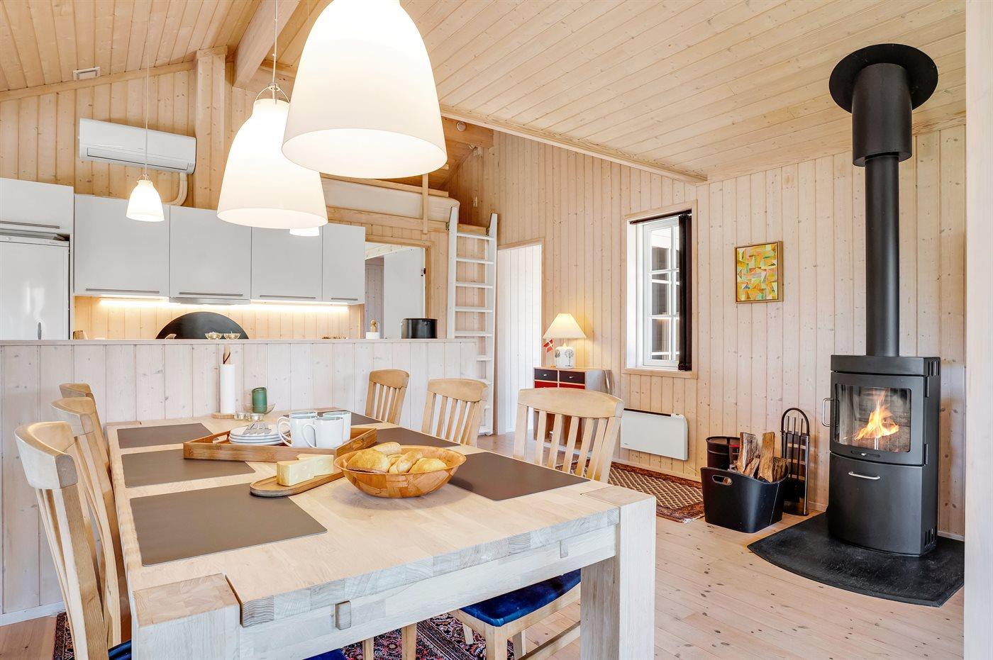 Sommerhuset egner sig til 8 personer. Ferieboligen er på 104 m² og er bygget i 2009. Det er ikke tilladt at medbringe husdyr. Ferieboligen er udstyret med 1 energibesparende luft til luft varmepumpe. Ferieboligen har vaskemaskine. Frysekapacitet på 60 liter. Der er desuden brændeovn. Til de små er der 1 stk. barnestol.