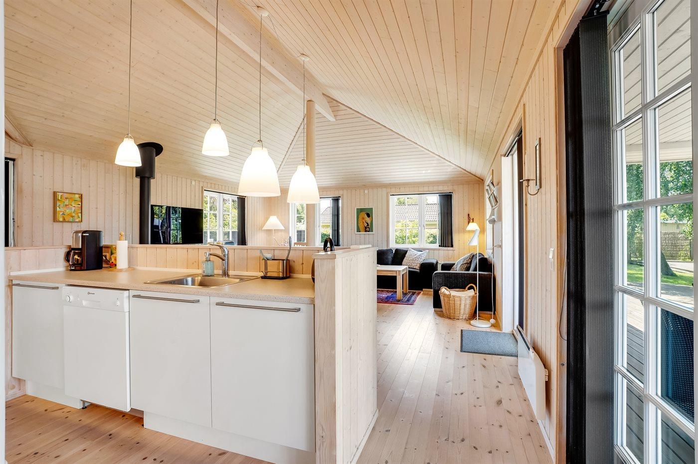 Køkkenet er udstyret med 1 køleskab. Der er 4 induktionskogeplader, varmluftovn, mikrobølgeovn samt opvaskemaskine.