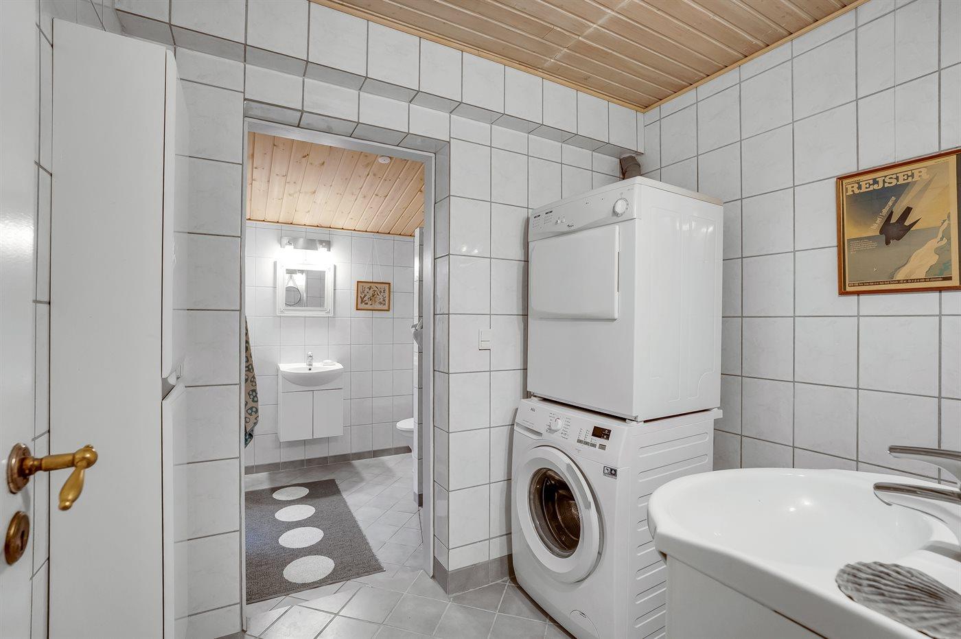 Der er 1 badeværelse med bruseniche og 2 toiletter, heraf 1 gæstetoilet. Der er gulvvarme på 1 badeværelse.
