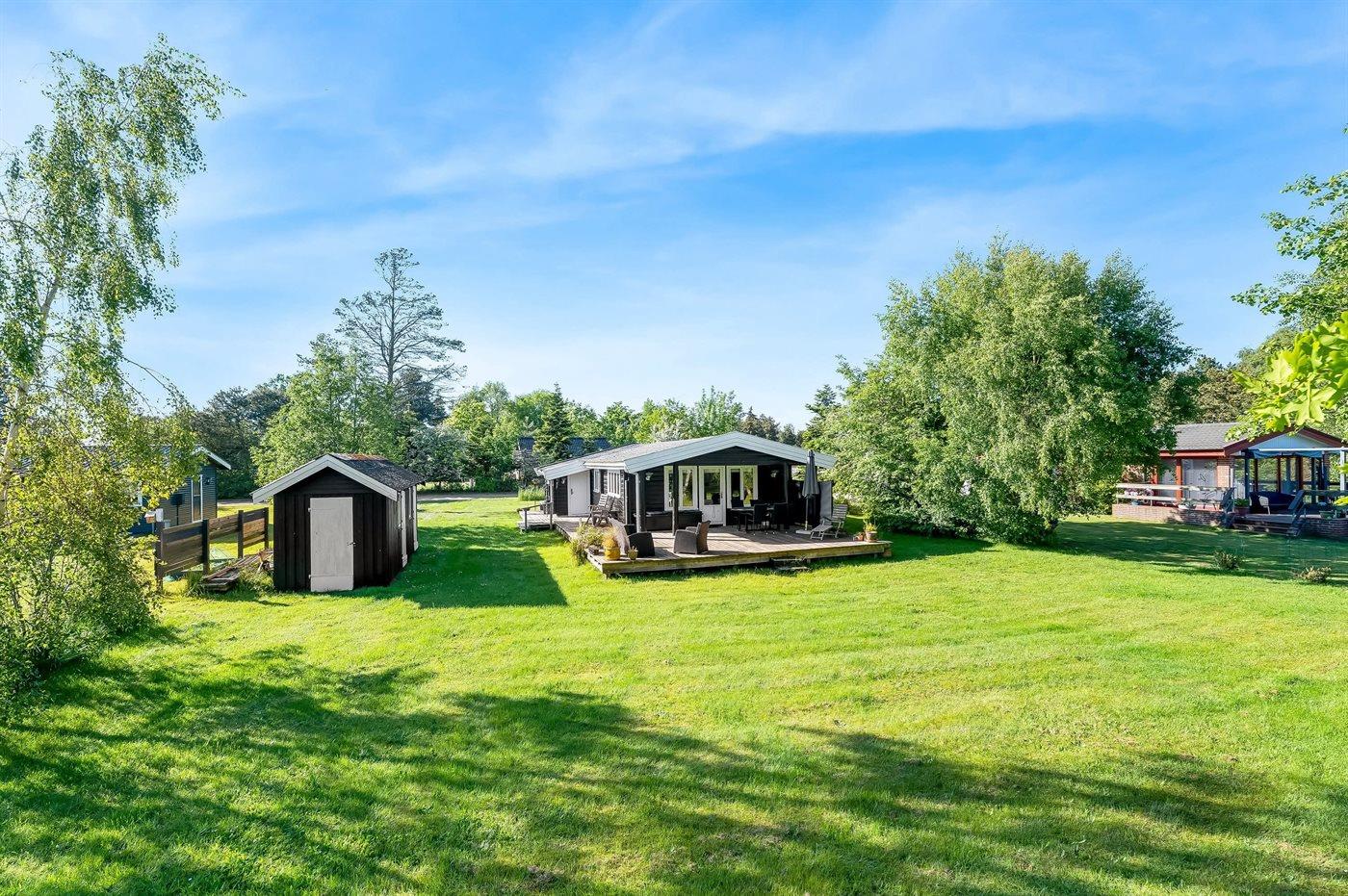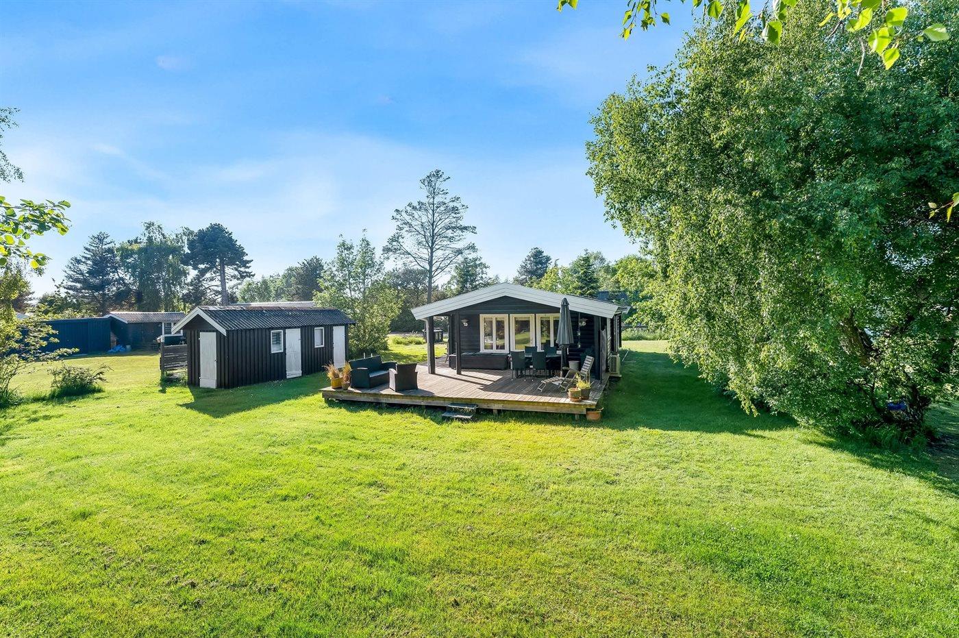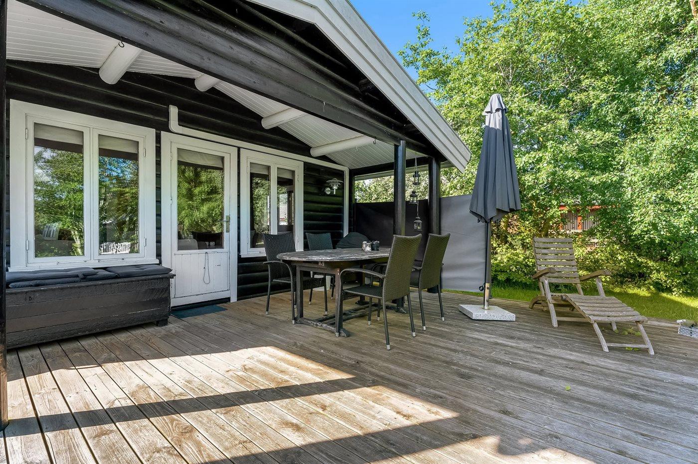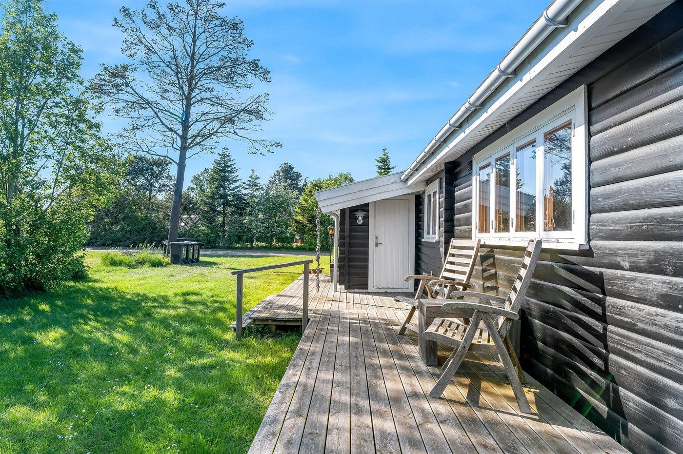 Til huset hører en dejlig stor terrasse, hvor der er god plads til masser af timer i det fri - her kan man nyde solen, læse en god bog og nyde sommerens grillaftener. Haven er velegnet til boldspil og leg.