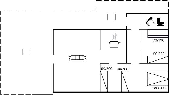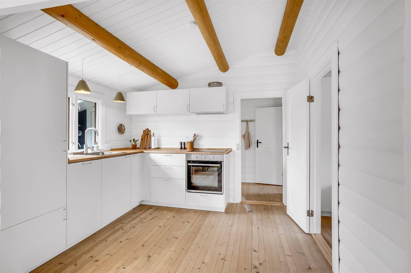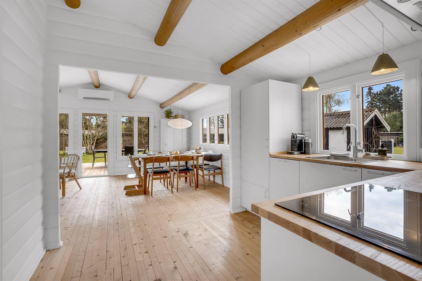 Køkkenet er udstyret med 1 køleskab. Der er 4 induktionskogeplader, varmluftovn, mikrobølgeovn samt opvaskemaskine.