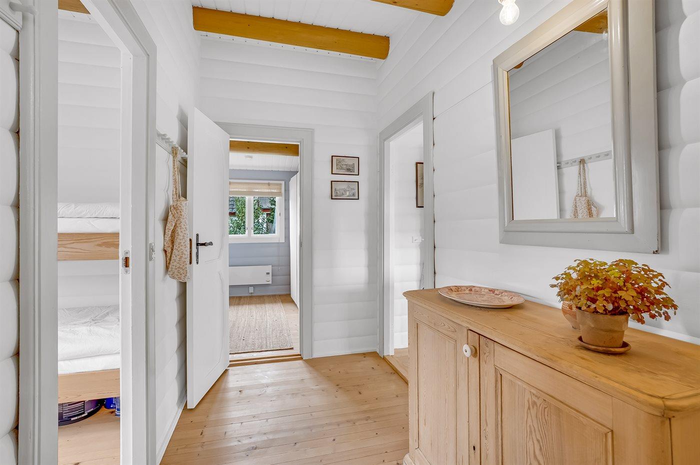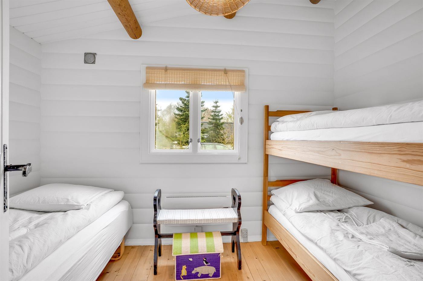 Der er i alt 3 soveværelser. Sovepladserne fordeler sig på: 2 sovepladser i dobbeltseng. 3 sovepladser i enkeltsenge. 2 sovepladser i køjeseng.