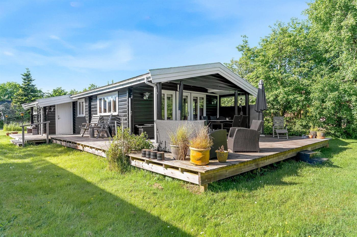 Hyggeligt sommerhus i Gedesby med stor terrasse, tæt på vandet og plads til familien og hunden.