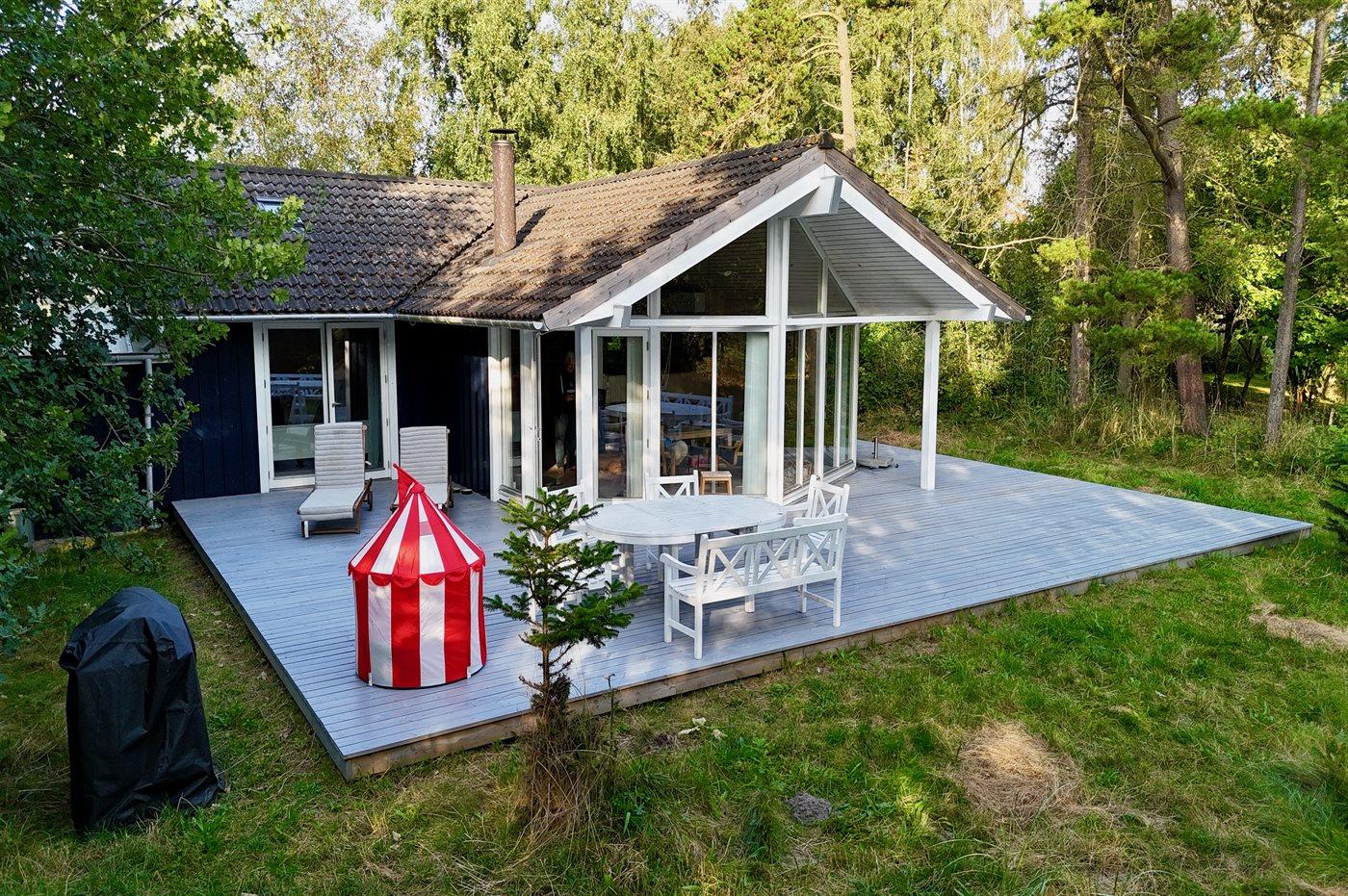 Lyst sommerhus nær børnevenlig sandstrand med stor terrasse og naturgrund i Gedesby.