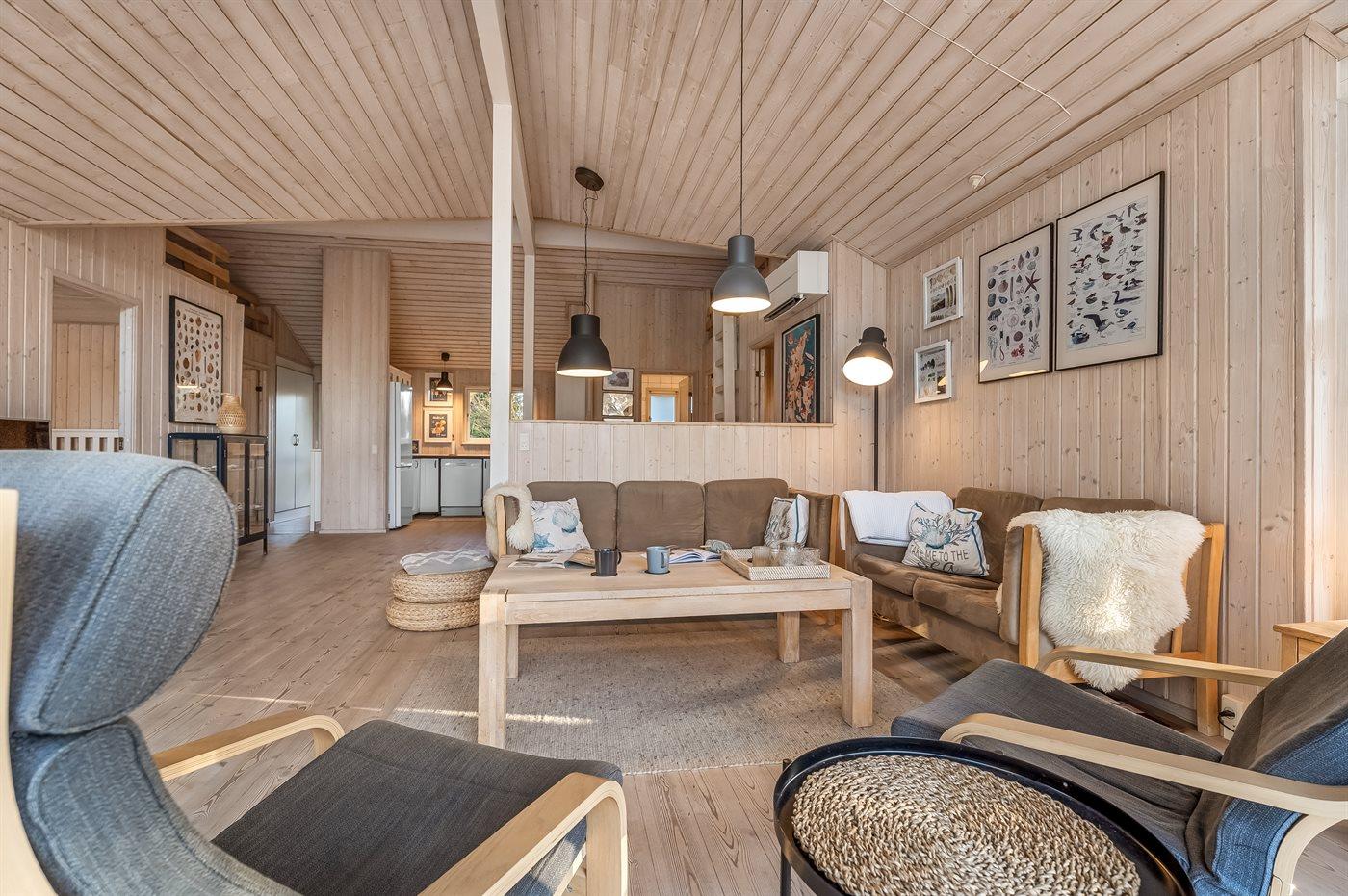 Sommerhuset egner sig til 8 personer. Ferieboligen er på 104 m² og er bygget i 2006. Det er tilladt at medbringe 2 husdyr. Ferieboligen er udstyret med energibesparende luft til luft varmepumpe. Der er gulvvarme i alle klinkegulve. Der er gulvvarme i entréen. Ferieboligen har vaskemaskine. Tørretumbler. Frysekapacitet på 114 liter. Der er desuden brændeovn. Til de små er der 1 stk. barnestol.