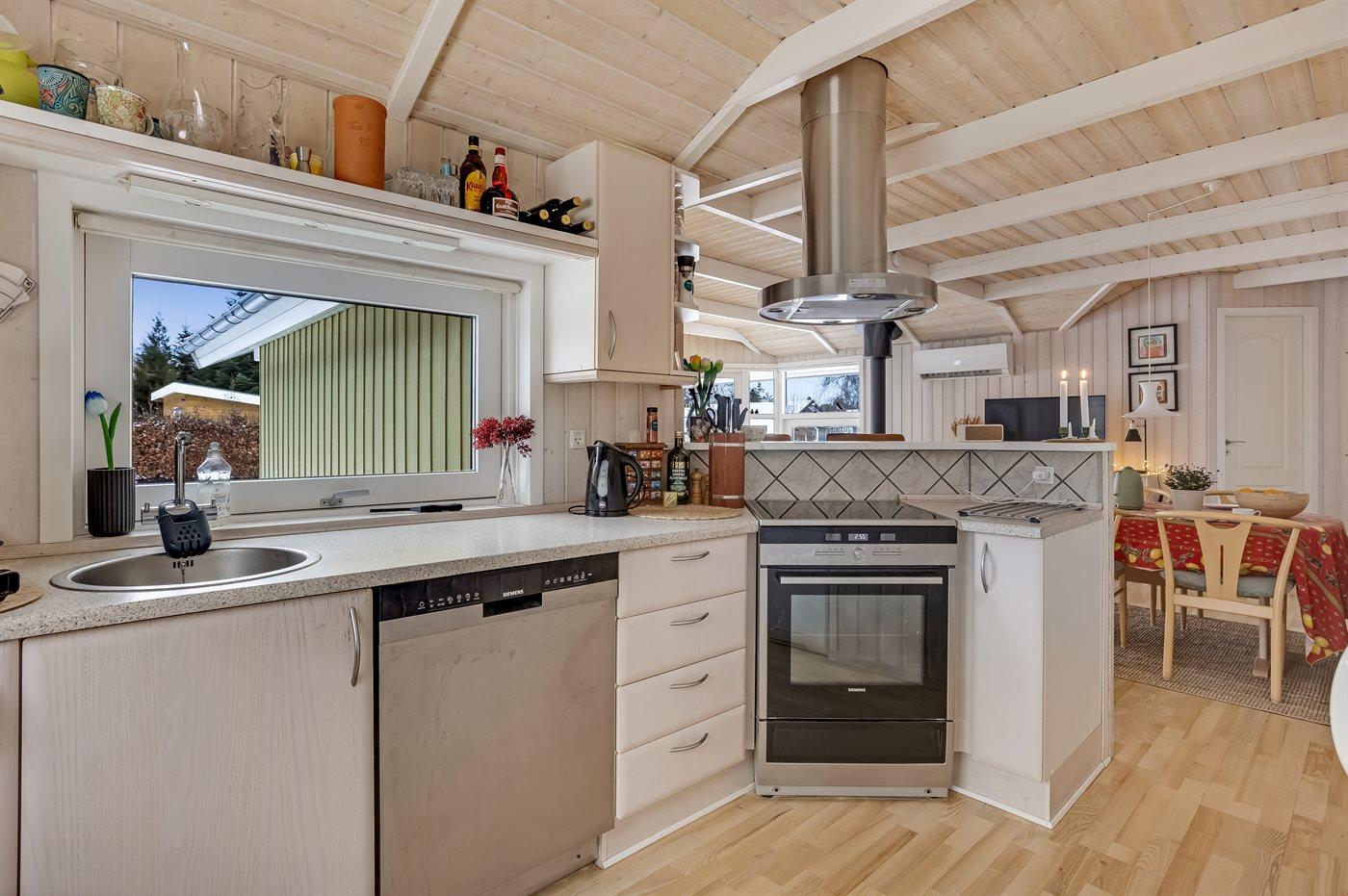 Køkkenet er udstyret med 1 køleskab. Der er 4 induktionskogeplader, varmluftovn, mikrobølgeovn samt opvaskemaskine.
