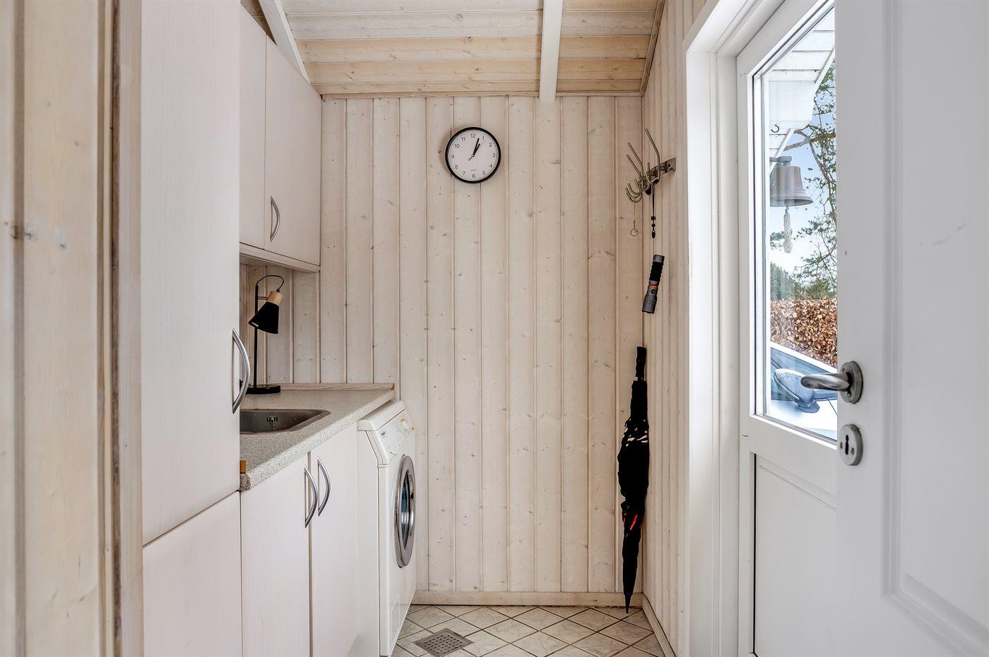 Ferieboligen er beliggende på en 1200 m² stor havegrund. Der er 500 m til havet. Nærmeste forretning er beliggende i en afstand af 4000 m. Desuden er der overdækket terrasse. Der er redskabsrum. Der er installeret stik til opladning af elbil. Type 2 stik. Med 11 kW ladeeffekt. Parkering ved ferieboligen.