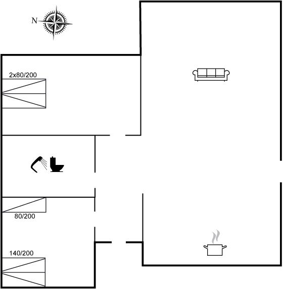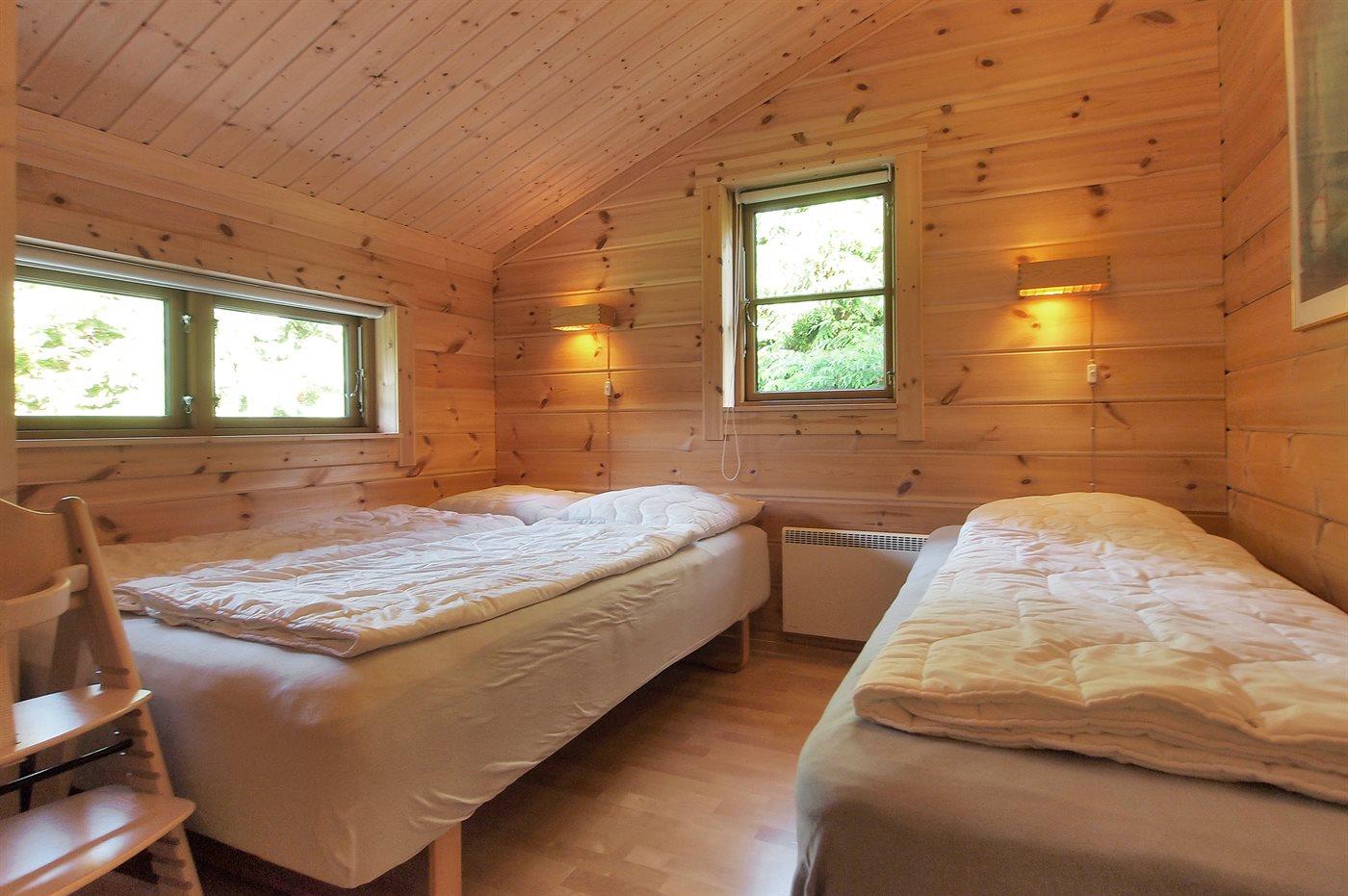 Der er i alt 2 soveværelser. Sovepladserne fordeler sig på: 4 sovepladser i 2 dobbeltsenge, og 1 soveplads i enkeltseng. Sovepladserne kan nemt ændres til 3 sovepladser i enkeltsenge og 2 sovepladser i dobbeltseng. Herudover 2 sovepladser på madrasser på hems.