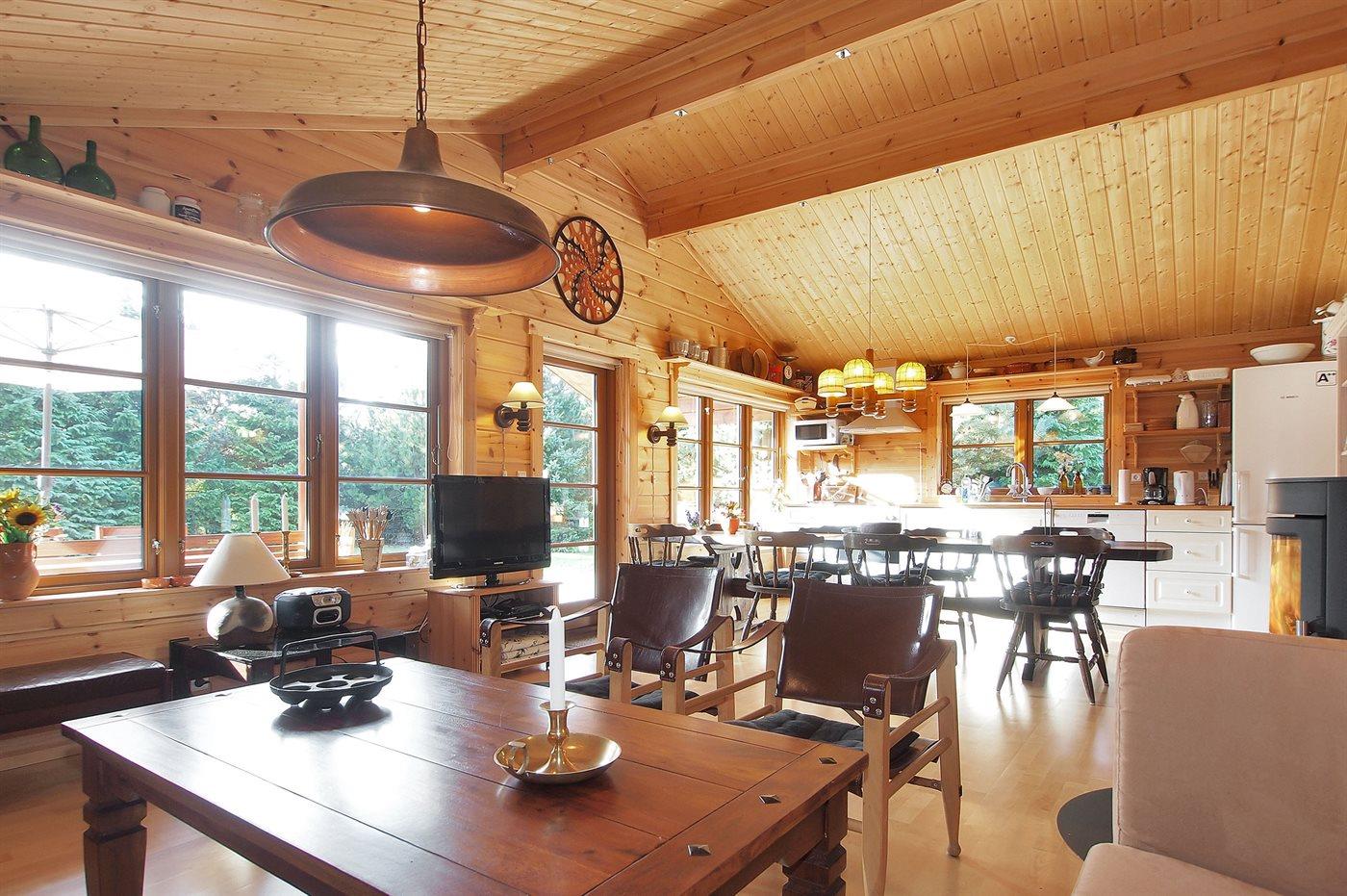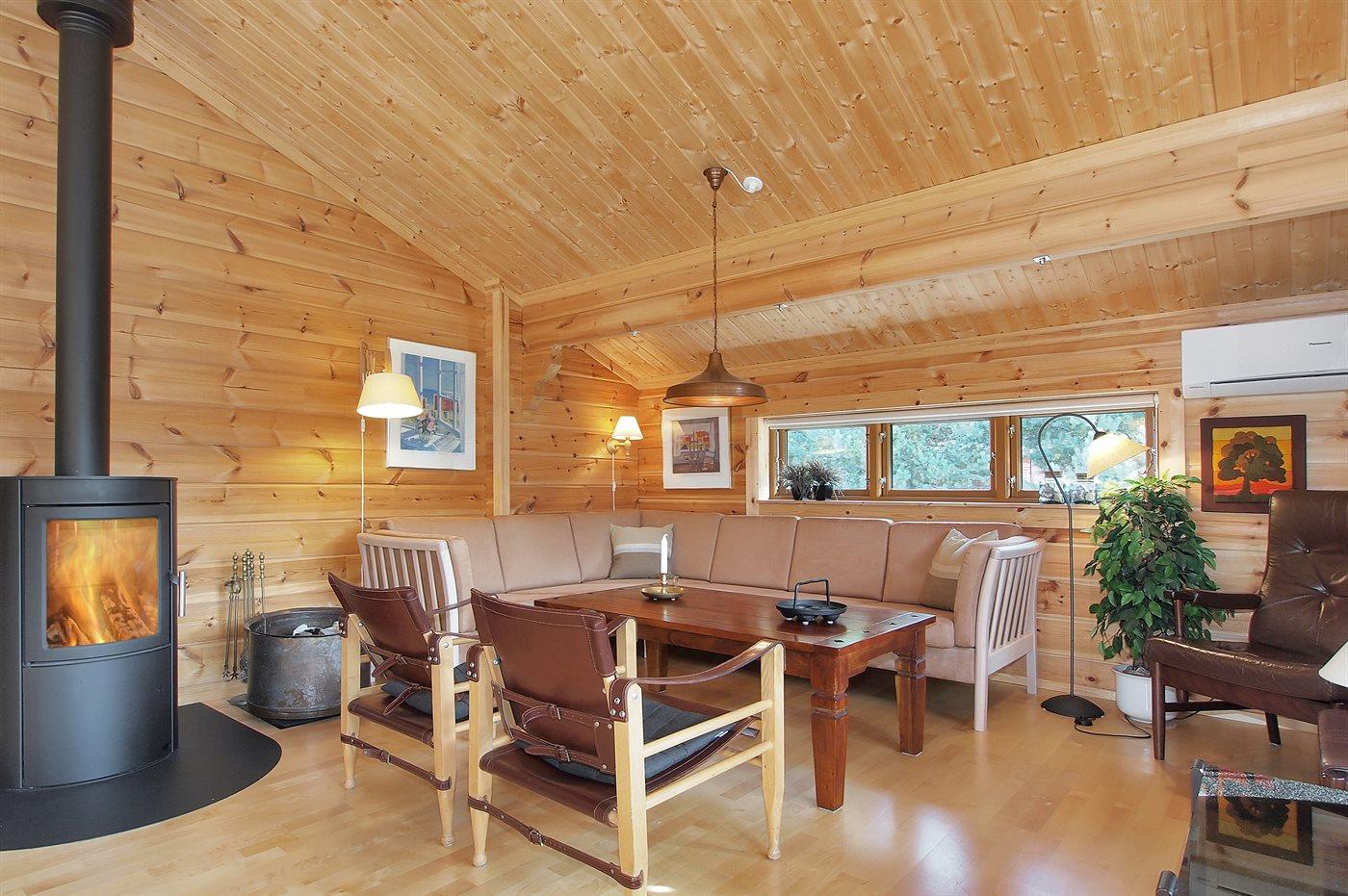 Flot finsk bjælkehus ved Gedesby Strand med direkte adgang til en af Danmarks bedste sandstrande.