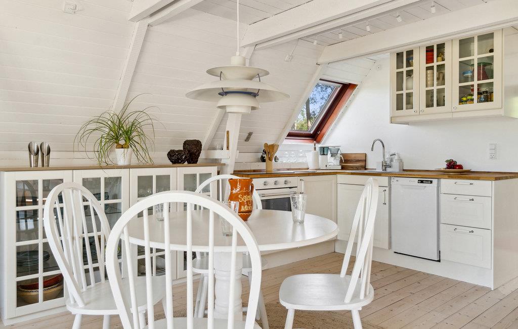 Huset er en drøm af hvid, og I kan nærmest mærke sommeren indenfor. Der er lys, luft og en lethed i alle værelser, og her fornemmer I ro og harmoni. Det perfekte sted til en afstressende ferie for krop og sjæl. Det smagfuldt og veludstyrede hus byder på en varme og hygge spredende brændeovn og inviterer til underholdende spilleaftener på kølige dage. Slap af på altanen og slik sol på den dejlige terrasse med et glas vin i hånden. Her kan I planlægge jeres vandretur til Gedser Fyrtårn. Den store have er det ideelle sted til at tumle. På varme dage kan I trække ind i skyggen på et tæppe under et at træerne. Fangeleg er altid en gode idé. Gå en tur til stranden og nyd livet ved havet.
