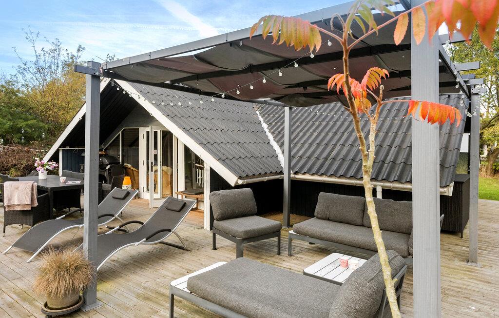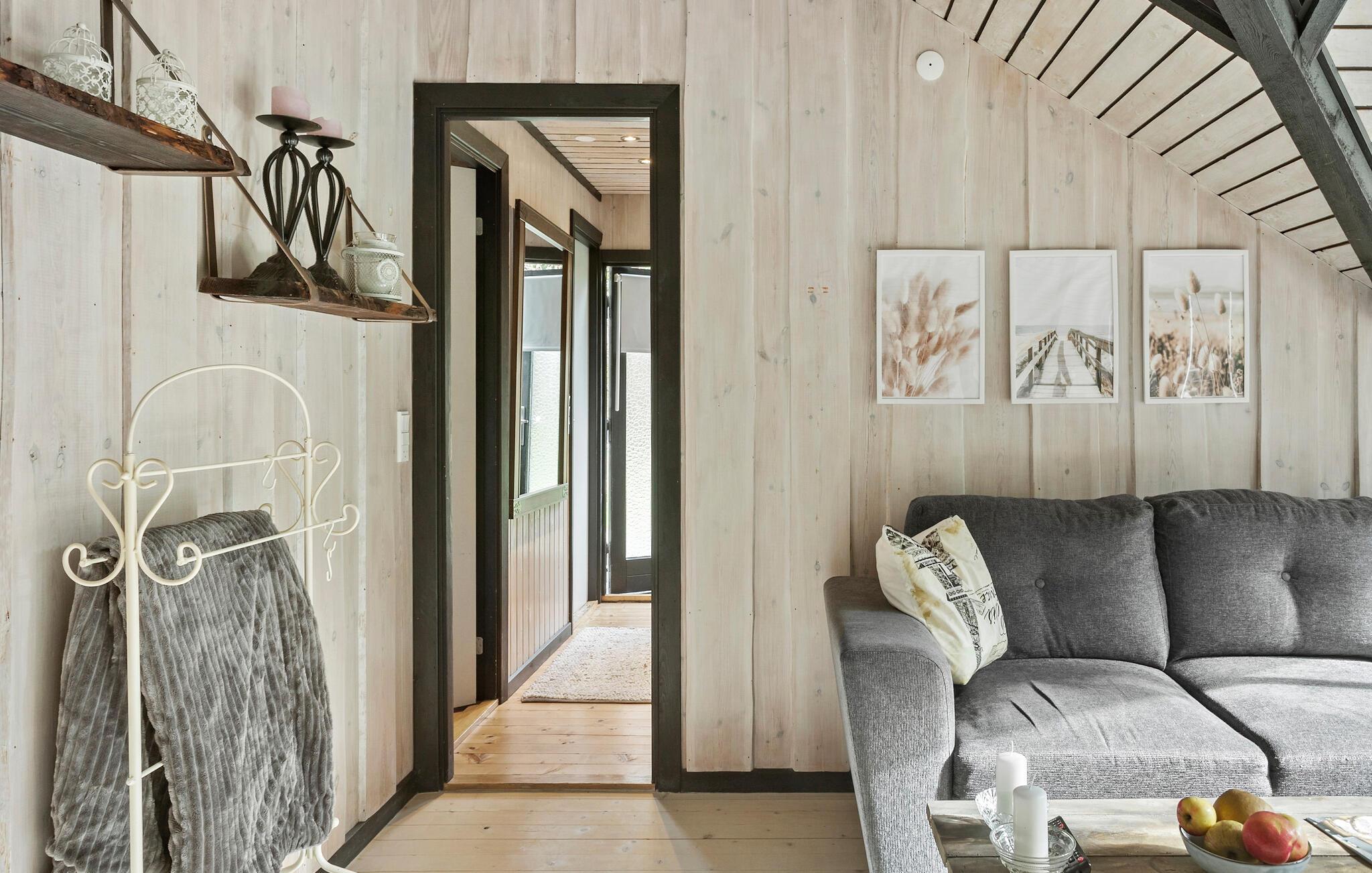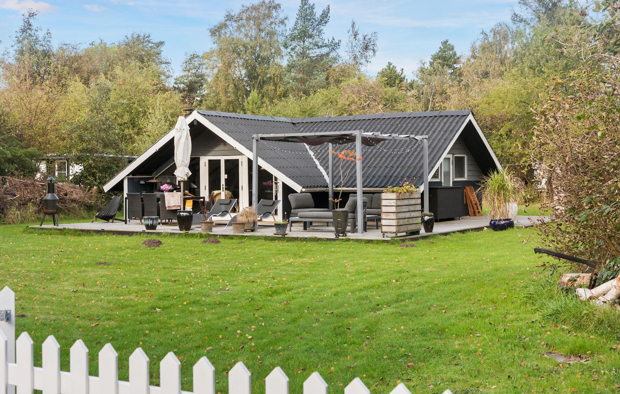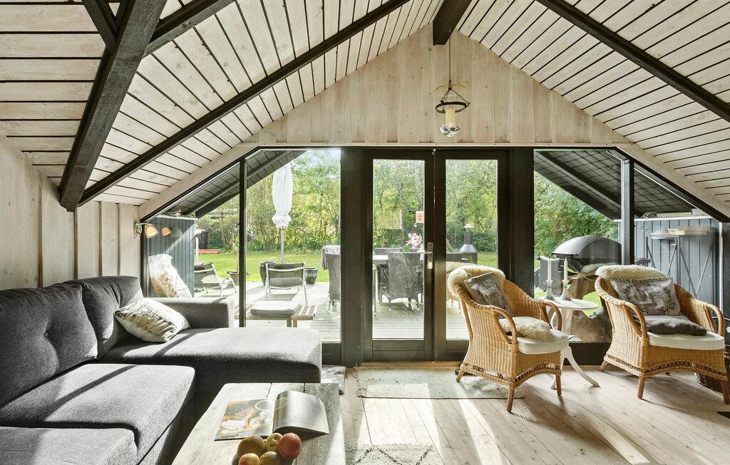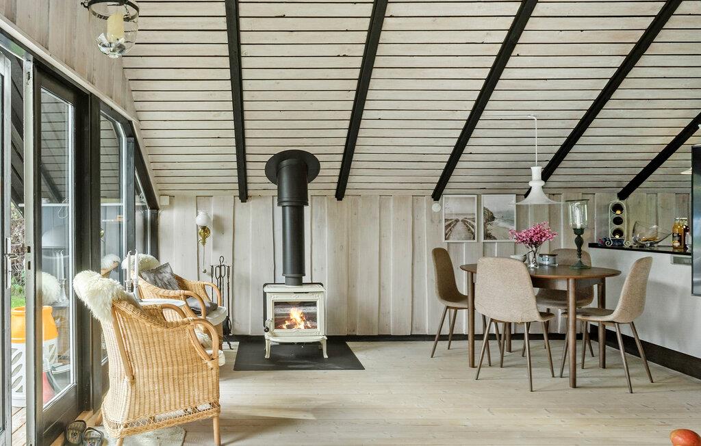 Dette charmerende feriehus byder på en indbydende atmosfære med en smagfuld kombination af lys og mørk træbeklædning. Den omhyggeligt indrettede stue skaber en varm og behagelig stemning, perfekt til afslappende stunder. Lad hverdagens stress forsvinde, slå jer ned i den hyggelige stue og lav lækre ferieretter i det åbne køkken. Den rummelige terrasse er ideel til udendørs grillmad og måltider i solen, mens børnene leger i haven.