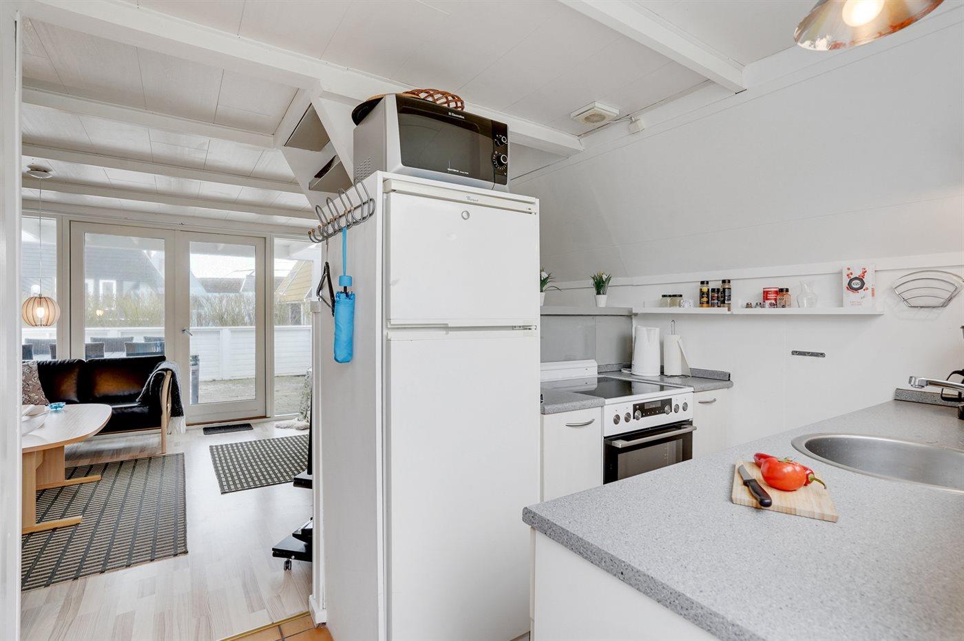 Køkkenet er udstyret med 1 køleskab. Der er 4 keramiske kogeplader, varmluftovn, mikrobølgeovn samt opvaskemaskine.