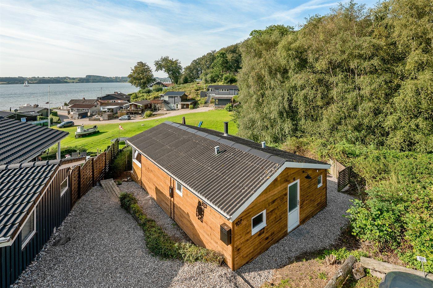 Højt beliggende for enden af lukket vej, på en lille grund, ligger dette flotte og nyrenoveret sommerhus lige ved vandet og skøn børnevenlig badestrand og med skøn havudsigt fra såvel hus som grund.