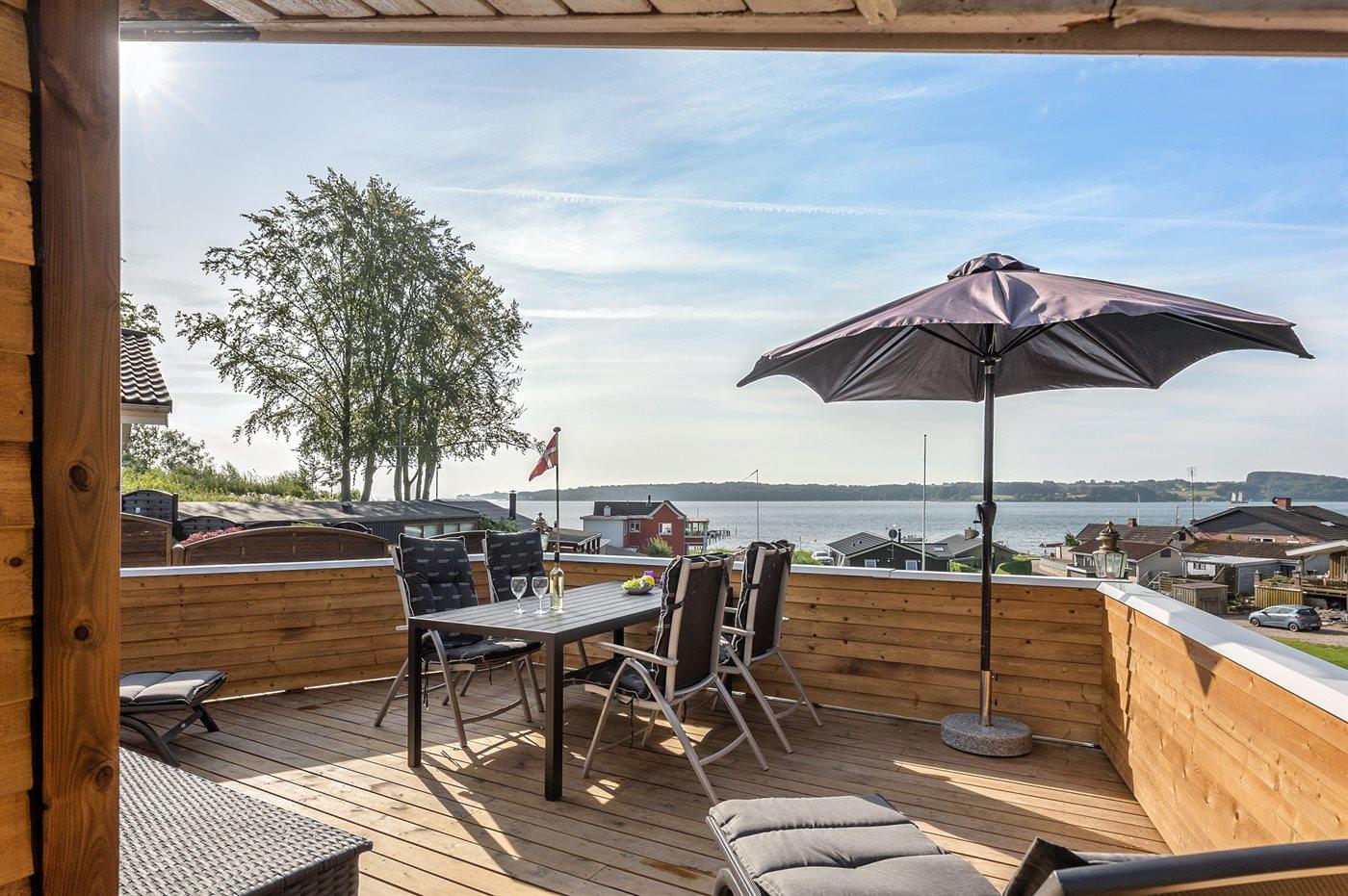 Flot nyrenoveret sommerhus med havudsigt og børnevenlig strand ved Genner Strand.