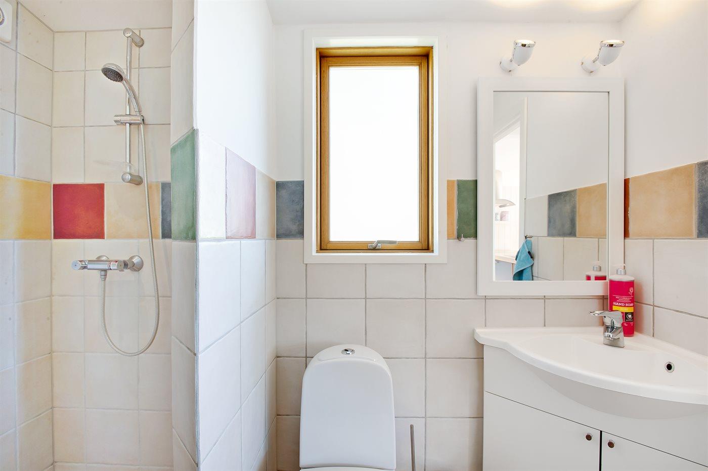 Der er 1 badeværelse med bruseniche og 1 toilet.. Der er gulvvarme på 1 badeværelse.