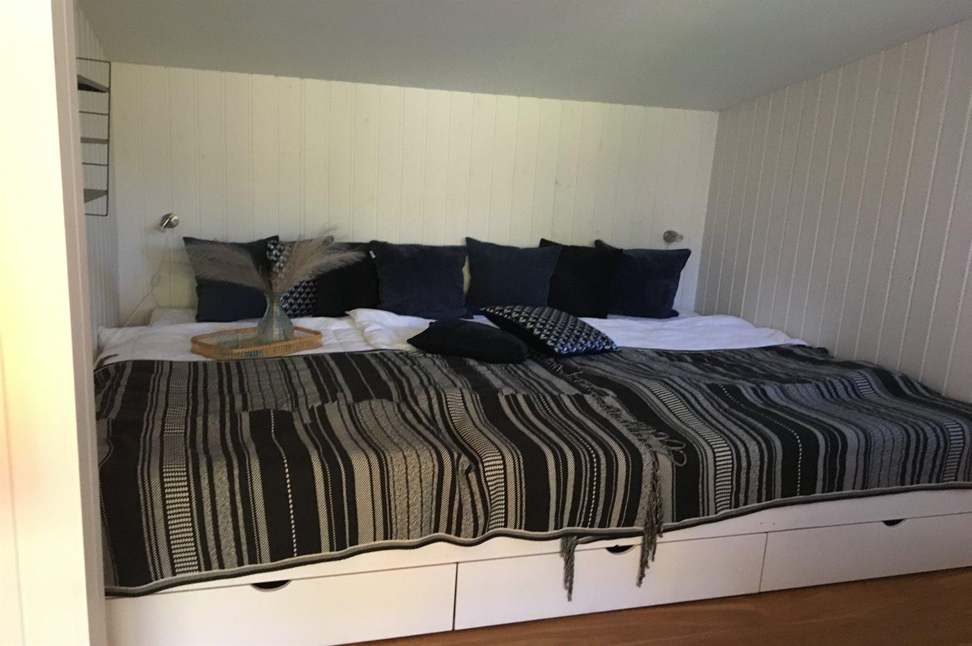 Der er i alt 1 soveværelse. Sovepladserne fordeler sig på: 2 sovepladser i dobbeltseng. 2 sovepladser i alkove. Derudover er der 1 stk. barneseng.