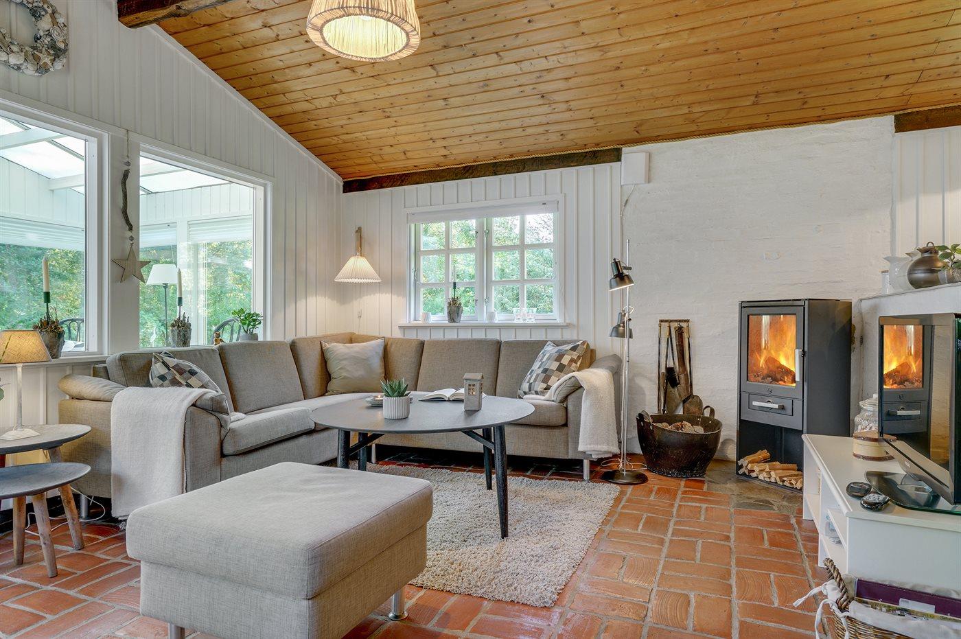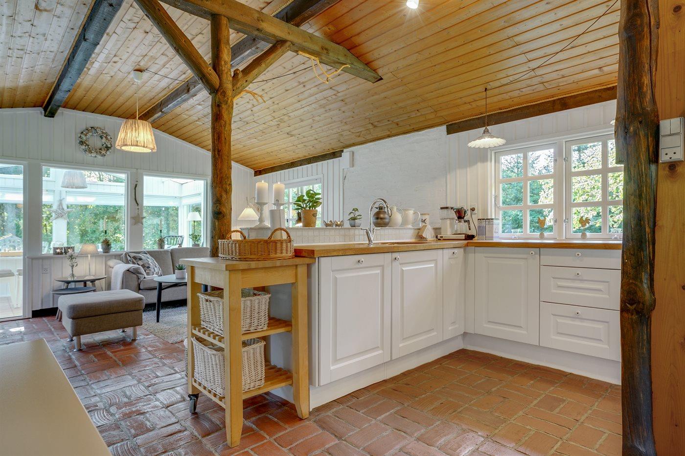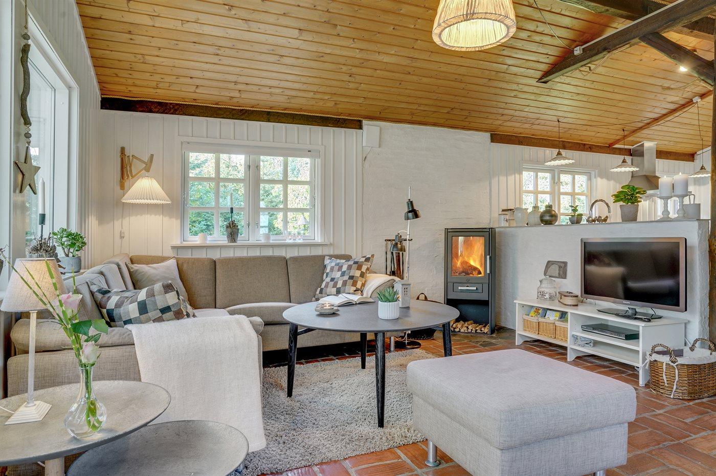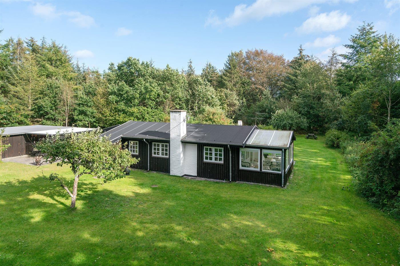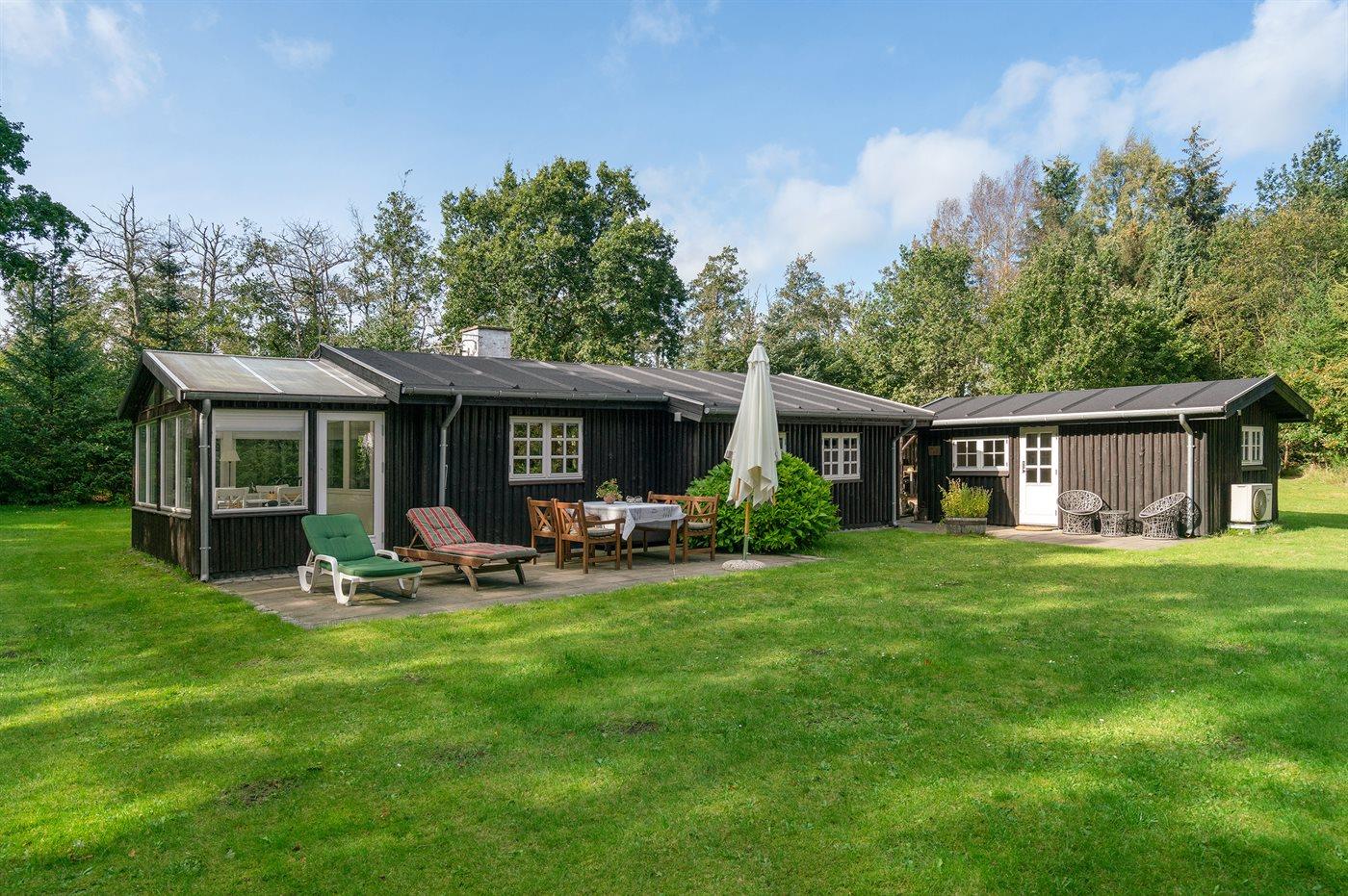 For enden af en blind vej, omgivet af træer og smuk natur, ligger dette velholdte sommerhus helt for sig selv. Grunden er på hele 4.800 m2 så her er god plads til at boltre sig - midt ude i naturen. Huset er holdt i ældre og landlig stil kombineret med et moderne præg. Ved siden af huset findes et stort og velholdt anneks, som er indrettet med 4 af de i alt 6 sovepladser.