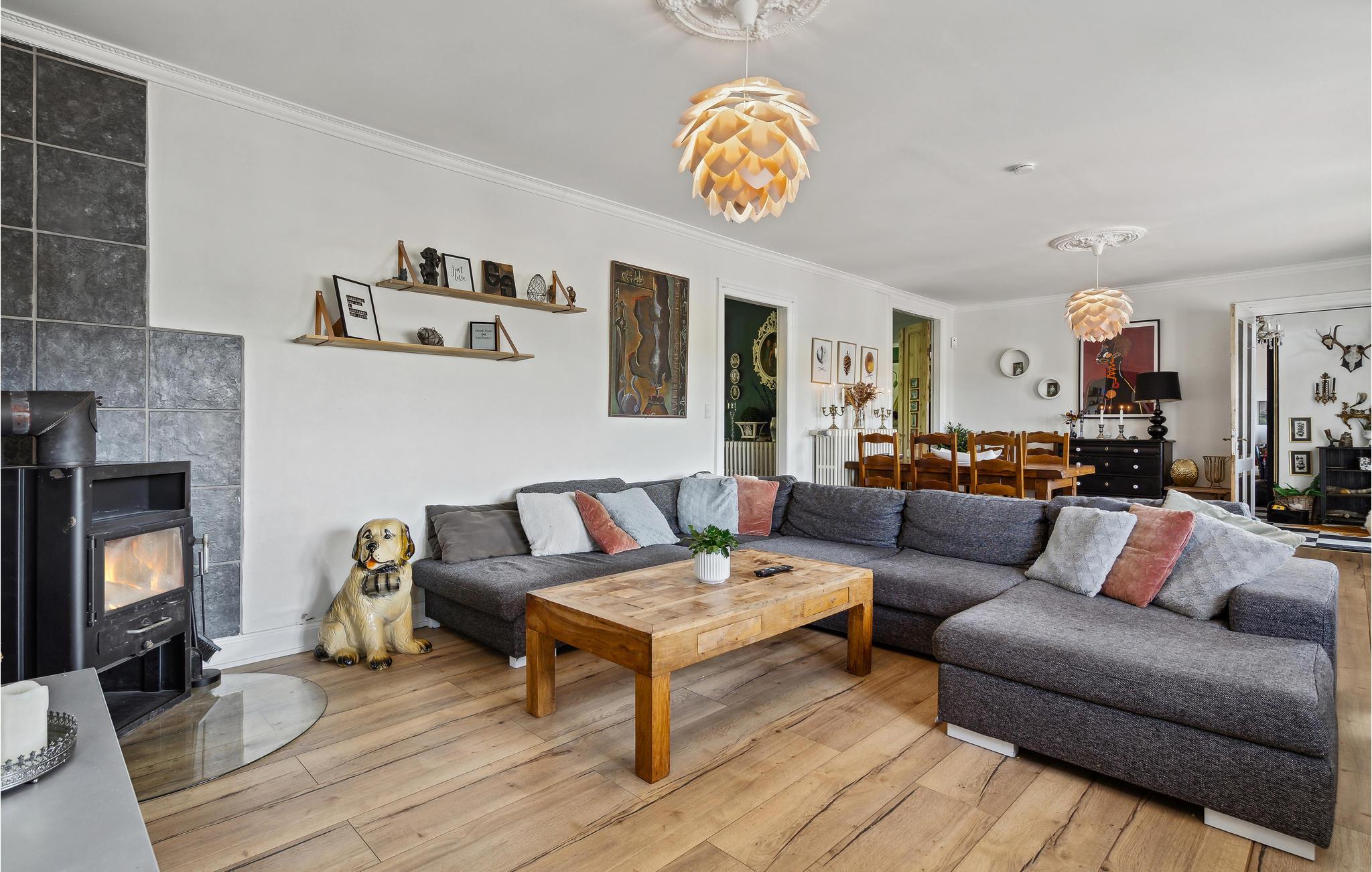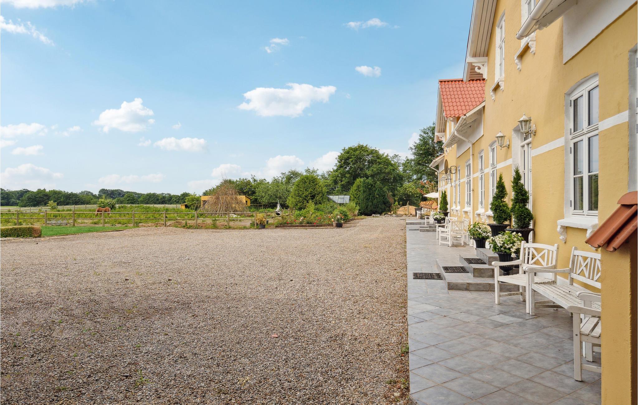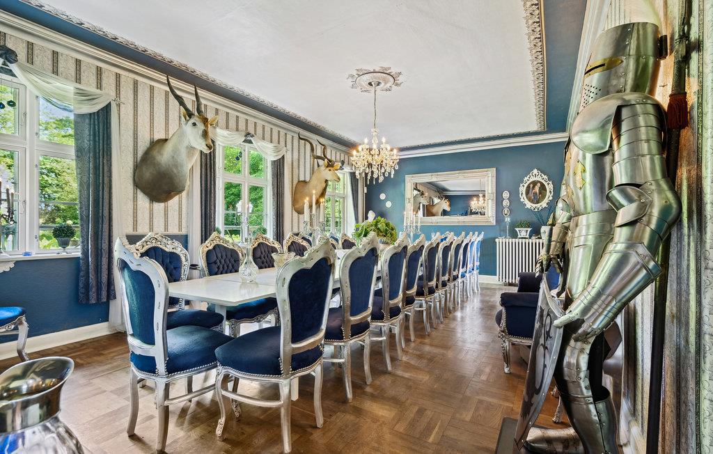 På denne tidligere indbydende gård får I en oplevelse ud over det sædvanlige, og der venter en ferie med spas og ren velvære! I huset kan man mærke historiens vingesus, og det er tydeligvis indrettet med kærlighed. Interiøret, de mange nips og vægdekorationerne giver stedet sin charmerende og enestående atmosfære. Rummenes forskellige stilarter og et væld af detaljer er en oplevelse i sig selv og harmonerer perfekt sammen, for her er sammensætningen indbegrebet af hygge. I hvert værelse er det som at træde ind i en anden tidsæra. Dermed finder I den hyggeligste ramme om en herlig familietid med afkobling og nærvær, og der er plads til den helt store familiesammenkomst. Nyd en skøn tid med fælles madlavning, brætspilshygge, bordfodboldkampe, selvforkælelse og en storstilet fest ved det kilometerlange bord i den fine spisestue. På kølige dage kan I boltre jer i aktivitetsrummet i annekset. Den store naturgrund opfylder alle ønsker. Hvad med en omgang volleyball? Børnene kan også få krøllede fingre i swimmingpoolen, mens andre mærker boblerne i det udendørs spabad med et glas rosé eller fremtryller lækre retter i køkkenet. Nyd dejlige måltider på terrassen med vidunderlig sommerstemning.