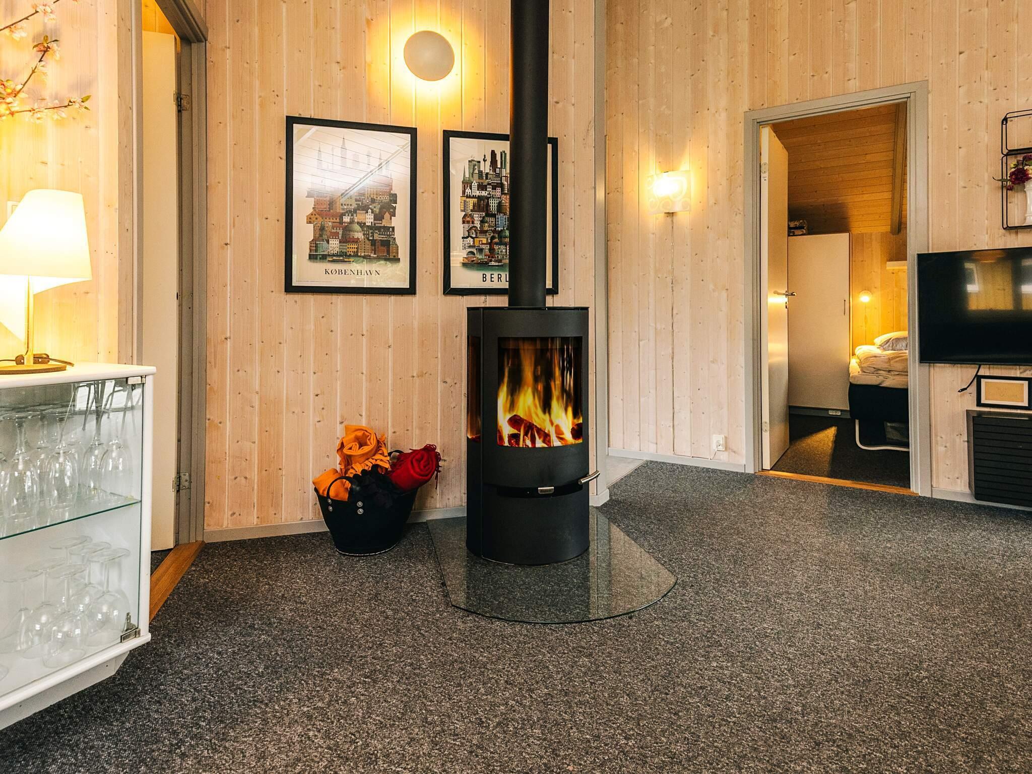 Spise-/opholdsrum med smagfuld indretning med bl.a. fladskærms-tv, PlayStation, Nintendo Wii og masser af brætspil, sofaafdeling og brændeovn. Både poolområde og spise-/opholdsstuen er et rigtig godt samlingspunkt for hele familien.