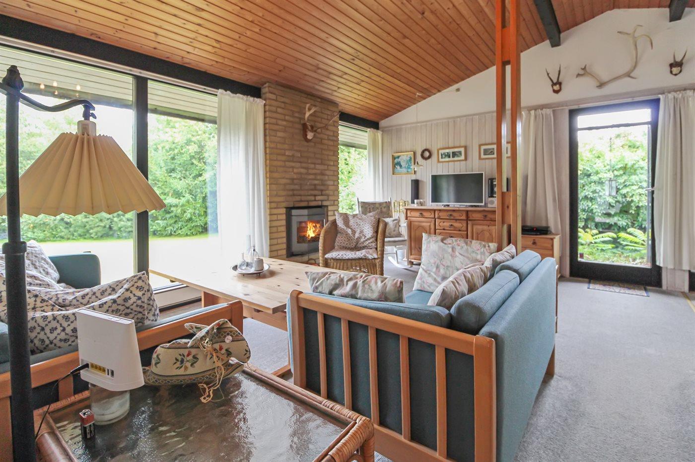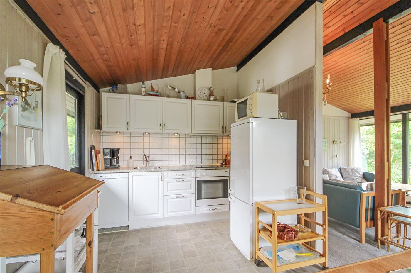 Mindre og velholdt sommerhus i træ, bygget i 1972 og løbende renoveret, beliggende på en naturgrund i det skønne Gilleleje. Omkring Gilleleje finder I en enestående natur med lyngklædte bakker, stejle skrænter, frodige marker og skov f.eks. Fyrbakkerne, der ligger mellem Gilleleje og Nakkehoved Fyr. Her I skoven finder I flere afmærkede vandrestier. Også stranden ved Gilleleje med det lave og rolige vand fortjener at blive nævnt. Til huset hører en overdækket terrasse med diverse havemøbler. Indvendig er der ludbehandlede trævægge samt trælofter med synlige bjælker. Lyse gulvtæpper i opholdsstuen og værelserne samt nyt linoleumsgulv i køkkenet. Mindre badeværelse med flisegulv og bruseniche. Det pæne køkken er kombineret med spise-/opholdsstuen og bl.a. udstyret med opvaskemaskine, mikrobølgeovn, fryser, varmluftovn og komfur med keramiske kogeplader. Opholdsstuen er åben til kip og virker derfor meget rummeligt - her finder I en stor pejs med indsats (kan bruges lukket), radio, stereoanlæg med CD-afspiller, DVD-afspiller og TV. Der er en trådløs internetforbindelse til rådighed. Bemærk at internet er begrænset til almindeligt brug 25 GB/pr. uge og ikke er til f.eks. streaming. Husets sovepladser fordeler sig på 3 værelser; 1 med dobbeltseng, 1 med 1 enkeltseng og 1 med 2 køjepladser.
