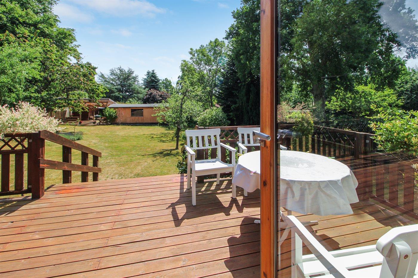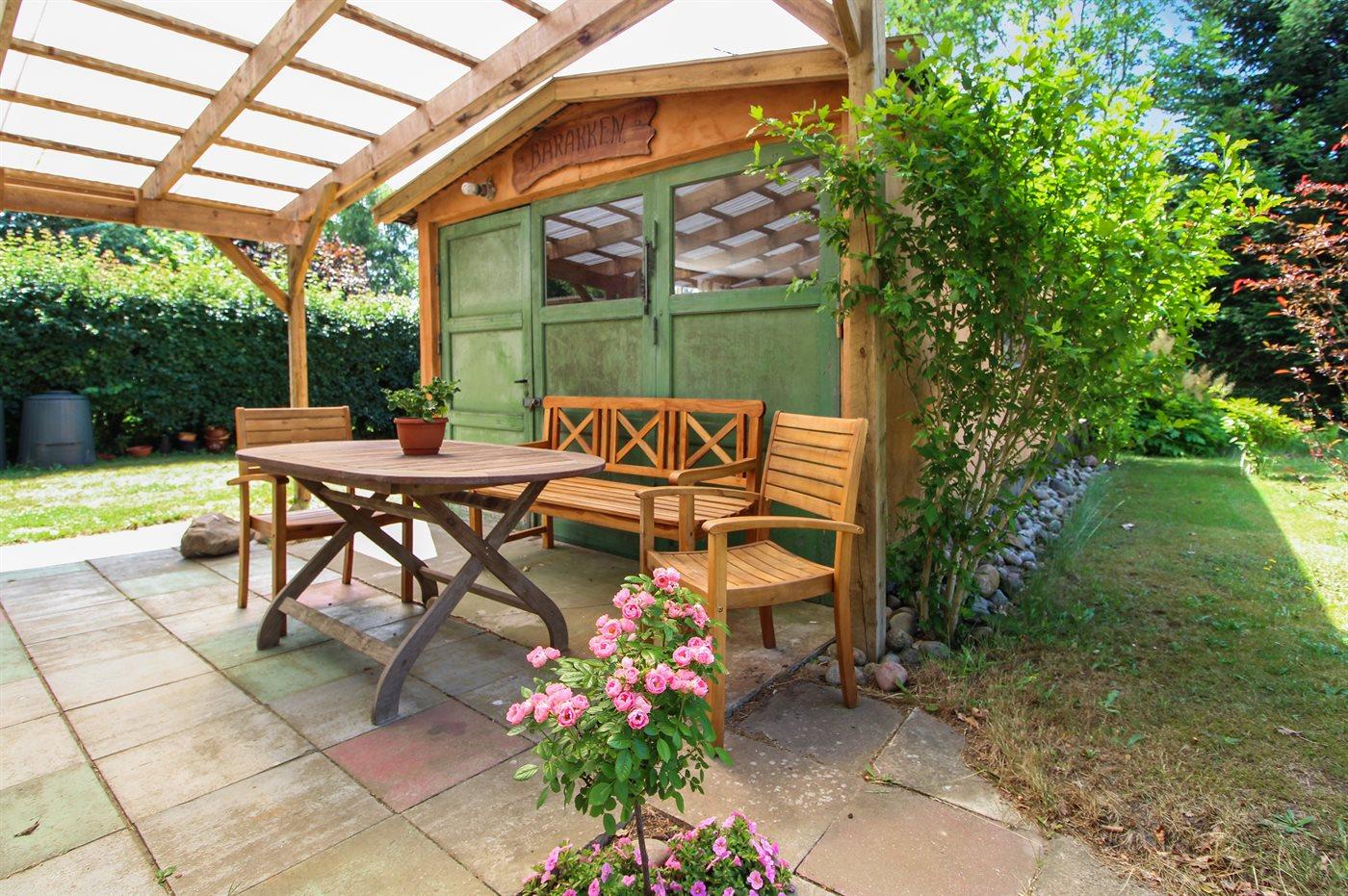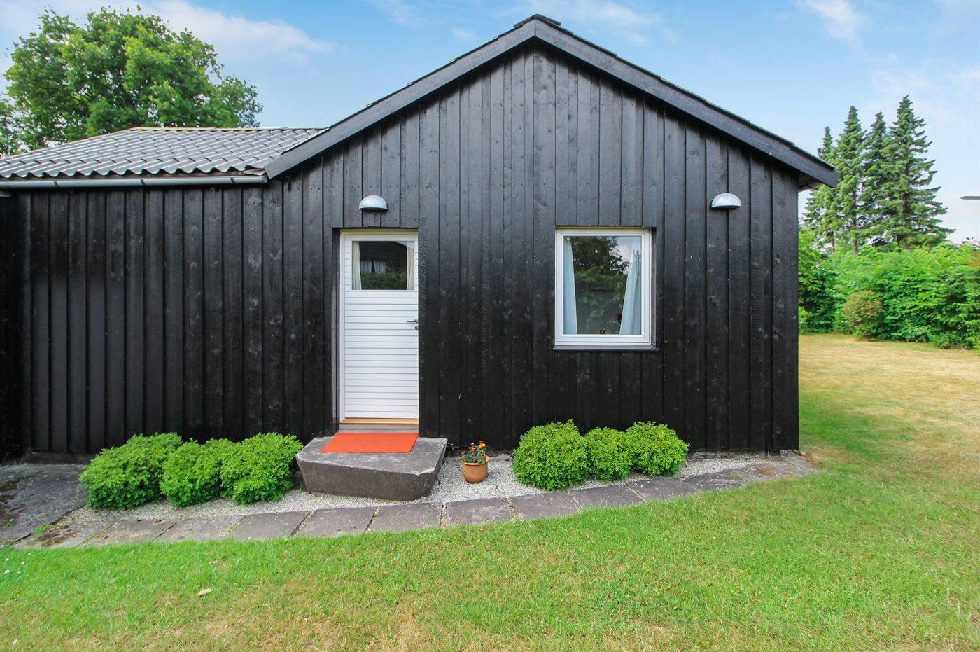 Hyggeligt sommerhus nær Gillelejes sandstrand med stor terrasse og dejlig have, perfekt til en afslappende ferie ved vandet.