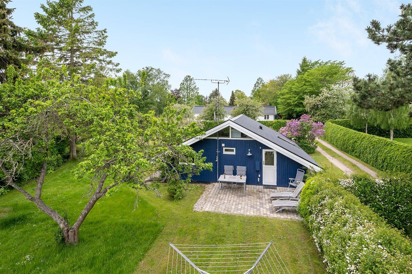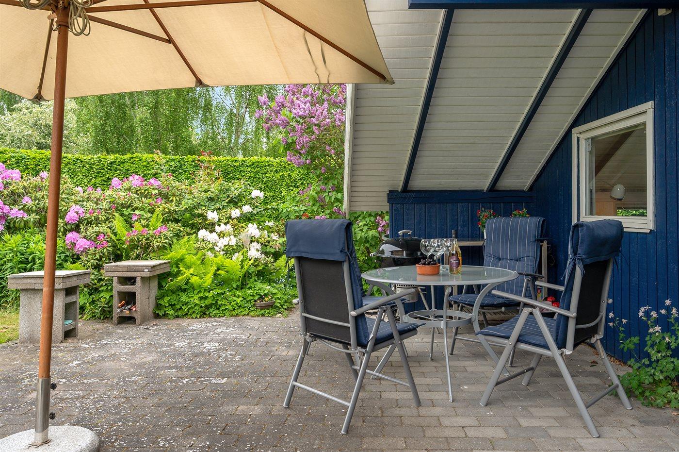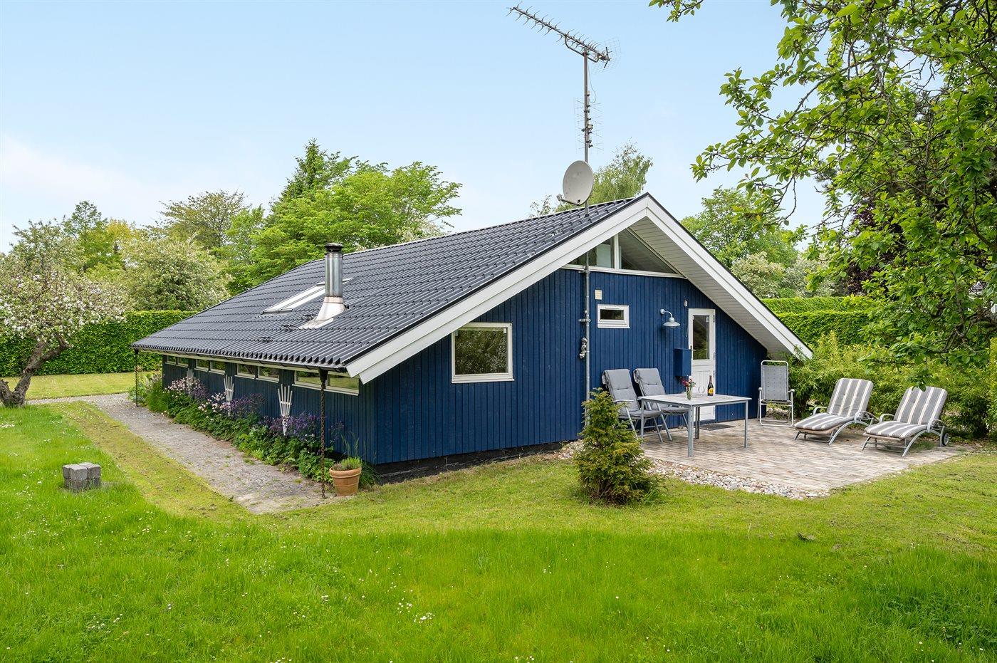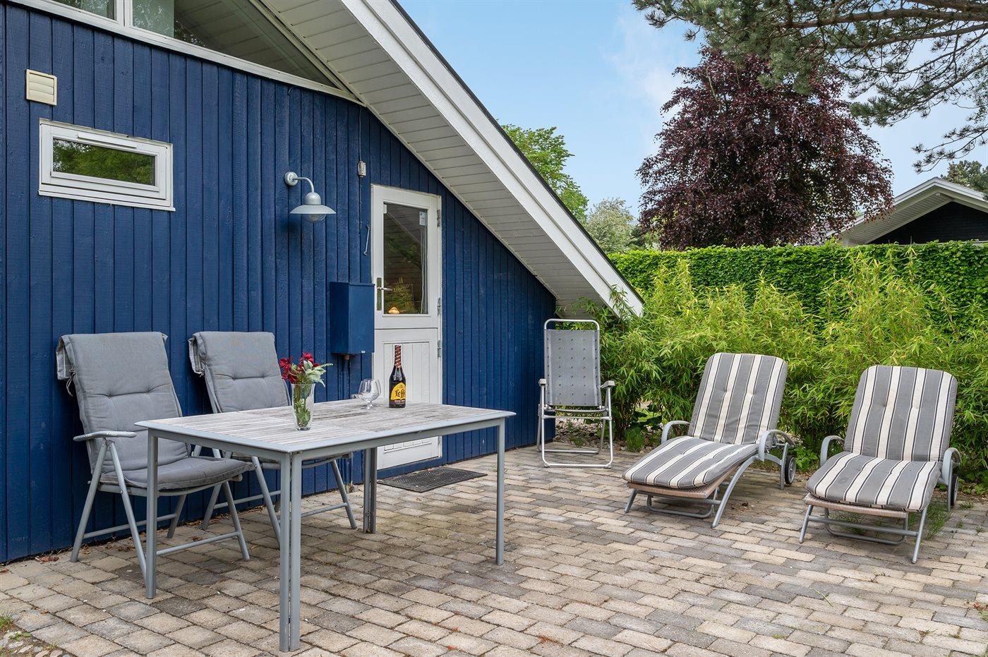 Ferieboligen er beliggende på en 1107 m² stor havegrund. Der er 350 m til havet. Nærmeste forretning er beliggende i en afstand af 1350 m. Til ferieboligen hører 30 m² terrasseareal. Desuden er der 10 m² overdækket terrasse. Der er redskabsrum. Grill til rådighed. Parkering ved ferieboligen.