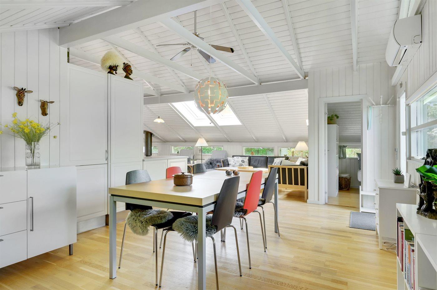 Sommerhuset egner sig til 5 personer. Ferieboligen er på 82 m² og er bygget i 1980. Det er ikke tilladt at medbringe husdyr. Ferieboligen er udstyret med energibesparende varmepumpe. Ferieboligen har vaskemaskine. Tørretumbler. Frysekapacitet på 30 liter. Der er desuden brændeovn. Til de små er der 1 stk. barnestol.