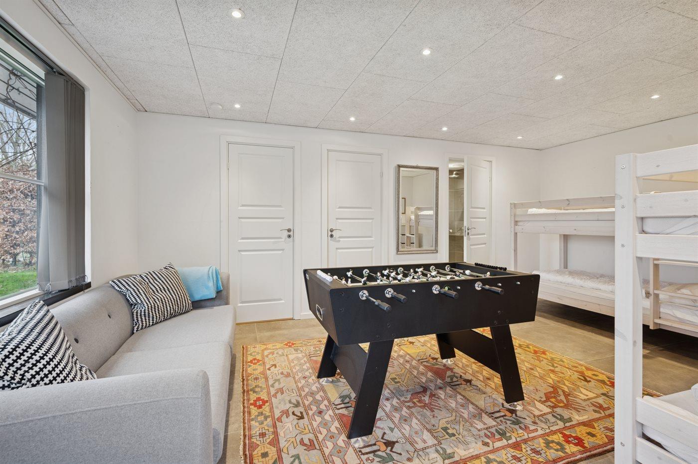 Swimmingpoolen har trappe, som gør det nemt at komme i og op af vandet. Der er også et hyggeligt hjørne med møbler i pool-området med mulighed for at slappe af og se på dem, der bader. Den udendørs spa befinder sig på terrasseområdet mellem huset og annekset. I annekset er der bordfodbold. Der er flere gode terrasser med god mulighed for altid at finde sol og læ for vinden.