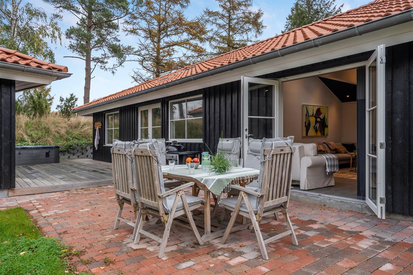 Dette nyopførte sommerhus med swimmingpool, sauna og udendørs spa til 6 personer byder på masser af luksus og komfort.