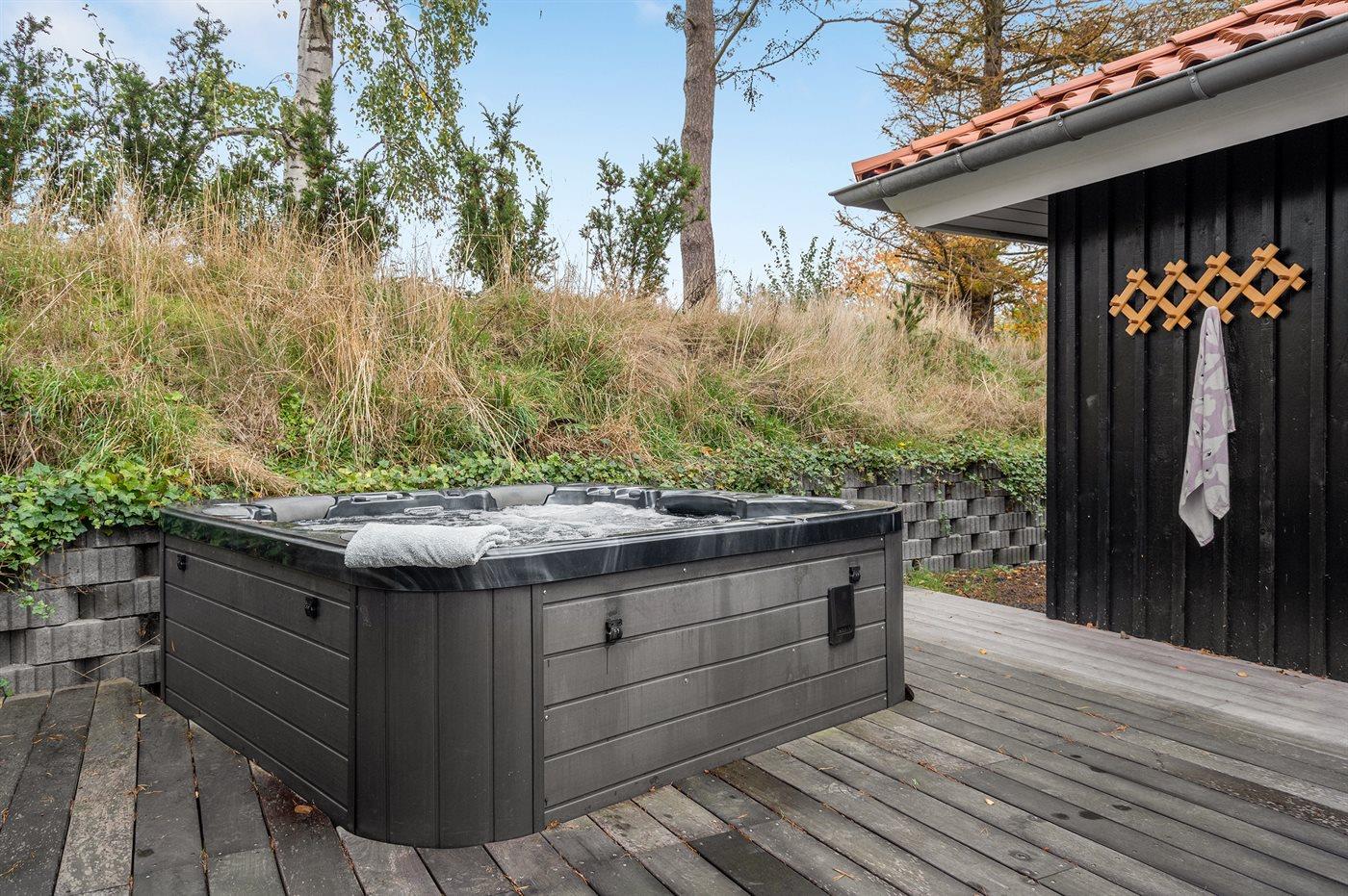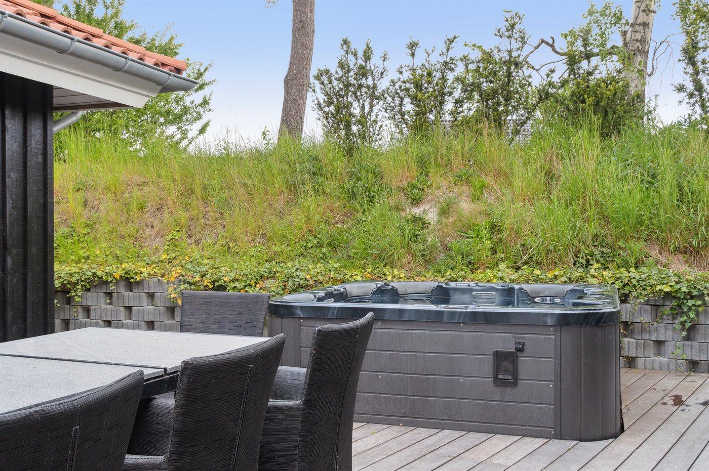 Der er mulighed for afslapning i udendørs standvandsspa til 6 personer.