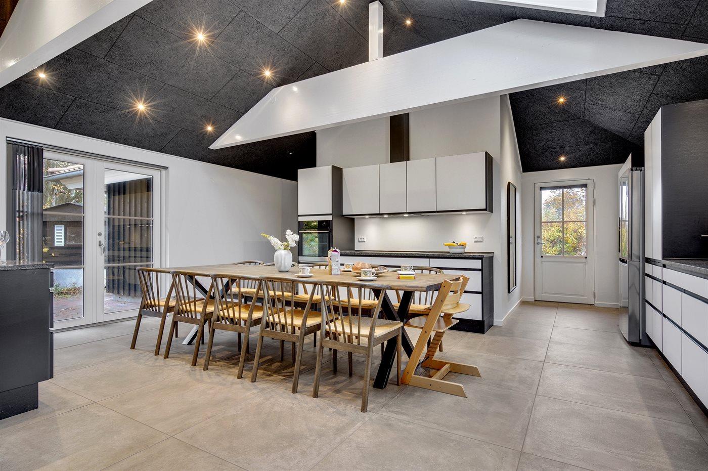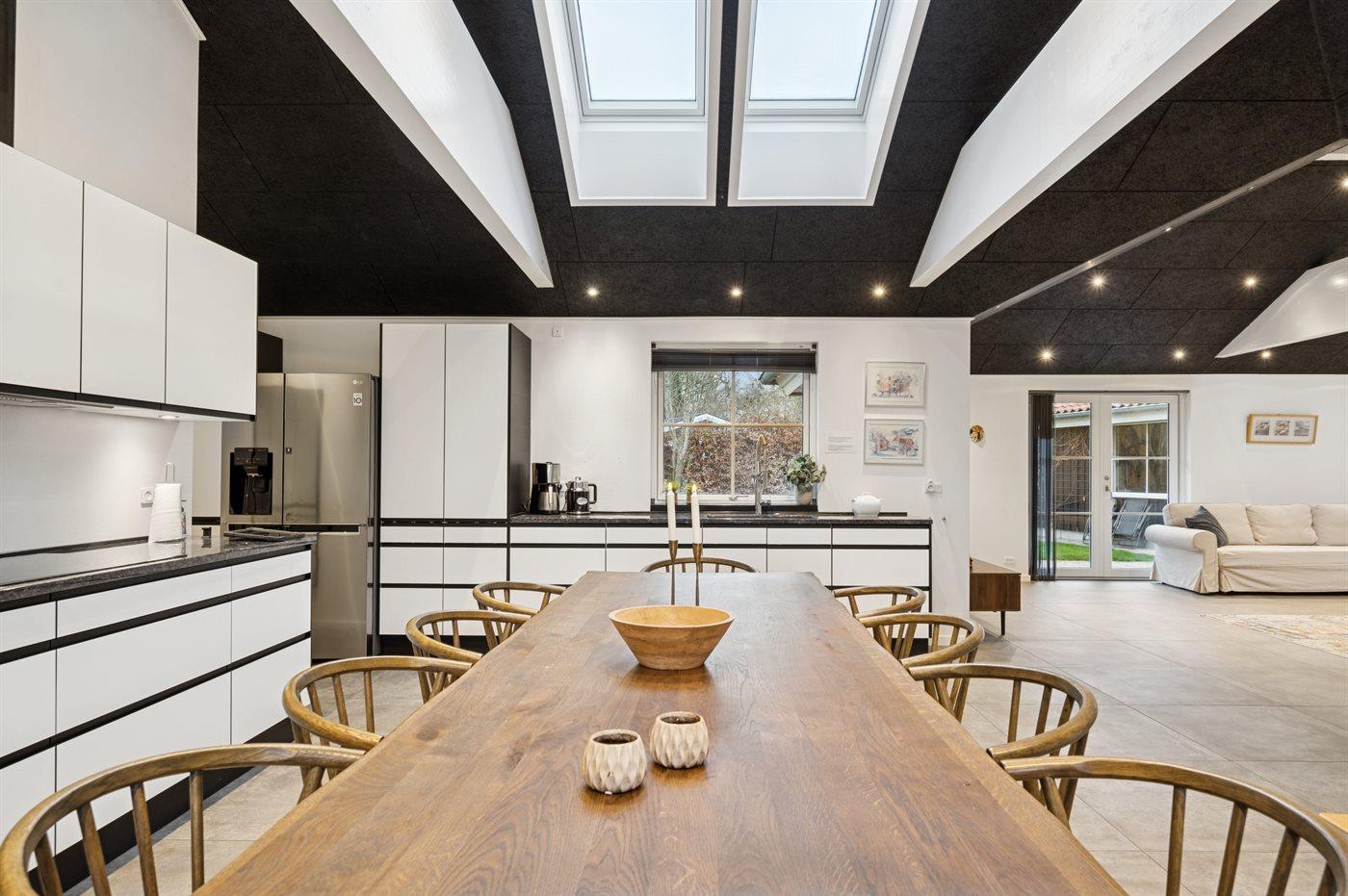 Køkkenet er udstyret med 1 køleskab. Køkkenet er udstyret med 1 amerikansk køleskab. Der er 5 induktionskogeplader, varmluftovn, mikrobølgeovn samt opvaskemaskine.