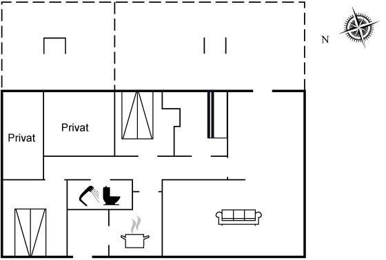 Der er i alt 3 soveværelser. Sovepladserne fordeler sig på: 4 sovepladser i dobbeltsenge. 2 sovepladser i køjeseng.