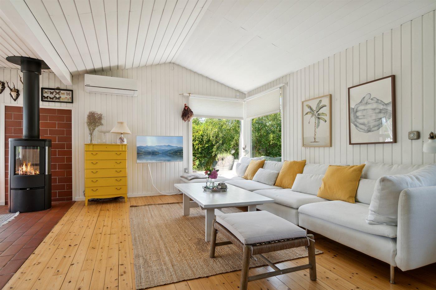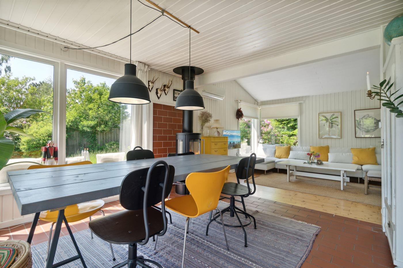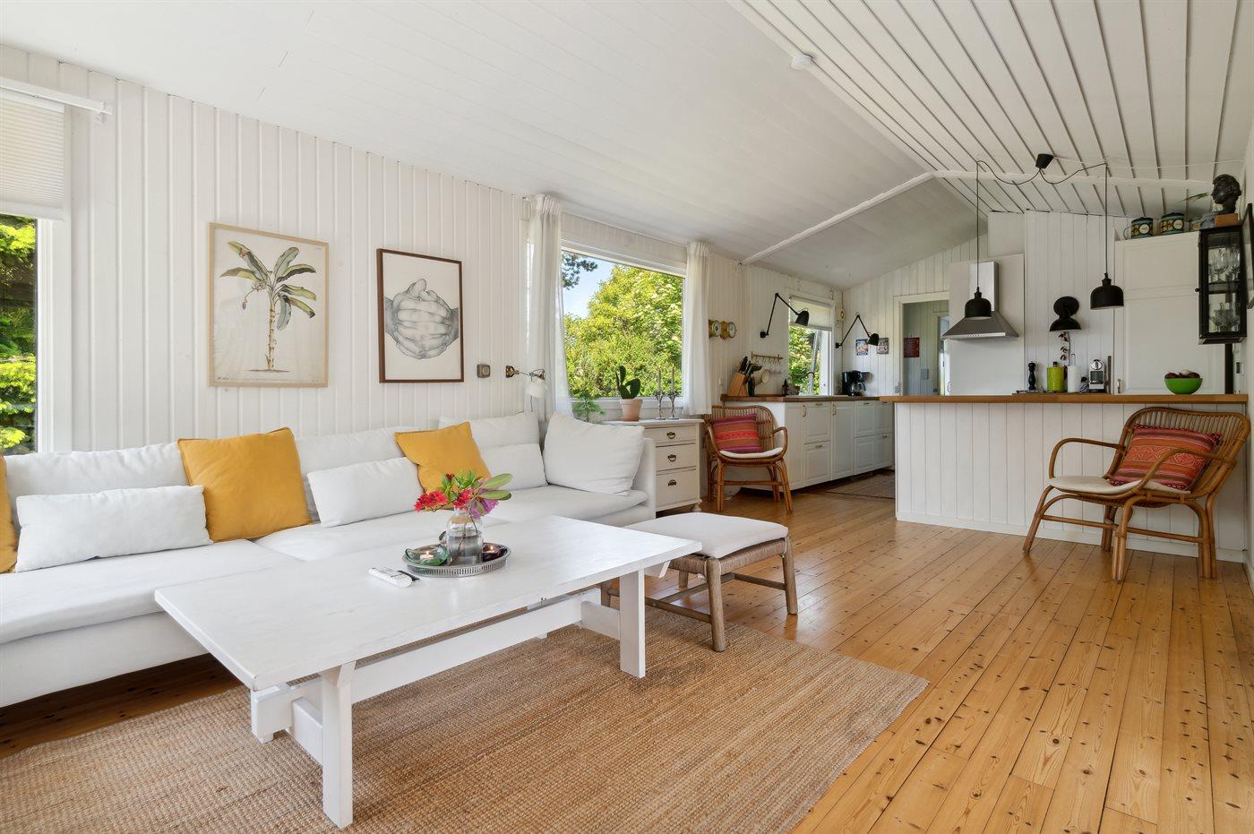 Dette rummelige sommerhus byder på et stort køkken i åben forbindelse med en hyggelig og lys stue og spiseplads. Her er rig mulighed for hygge og samvær. Fra spisestuen er der direkte udgang til haven og den store træterrasse, hvor en del er overdækket. Den store have er indhegnet med et 65 cm højt hegn og indbyder til leg og boldspil. Huset indeholder 3 soveværelser og 1 badeværelse med bruseniche. Der er desuden vaskemaskine og tørretumbler. Der er etableret fibernet.