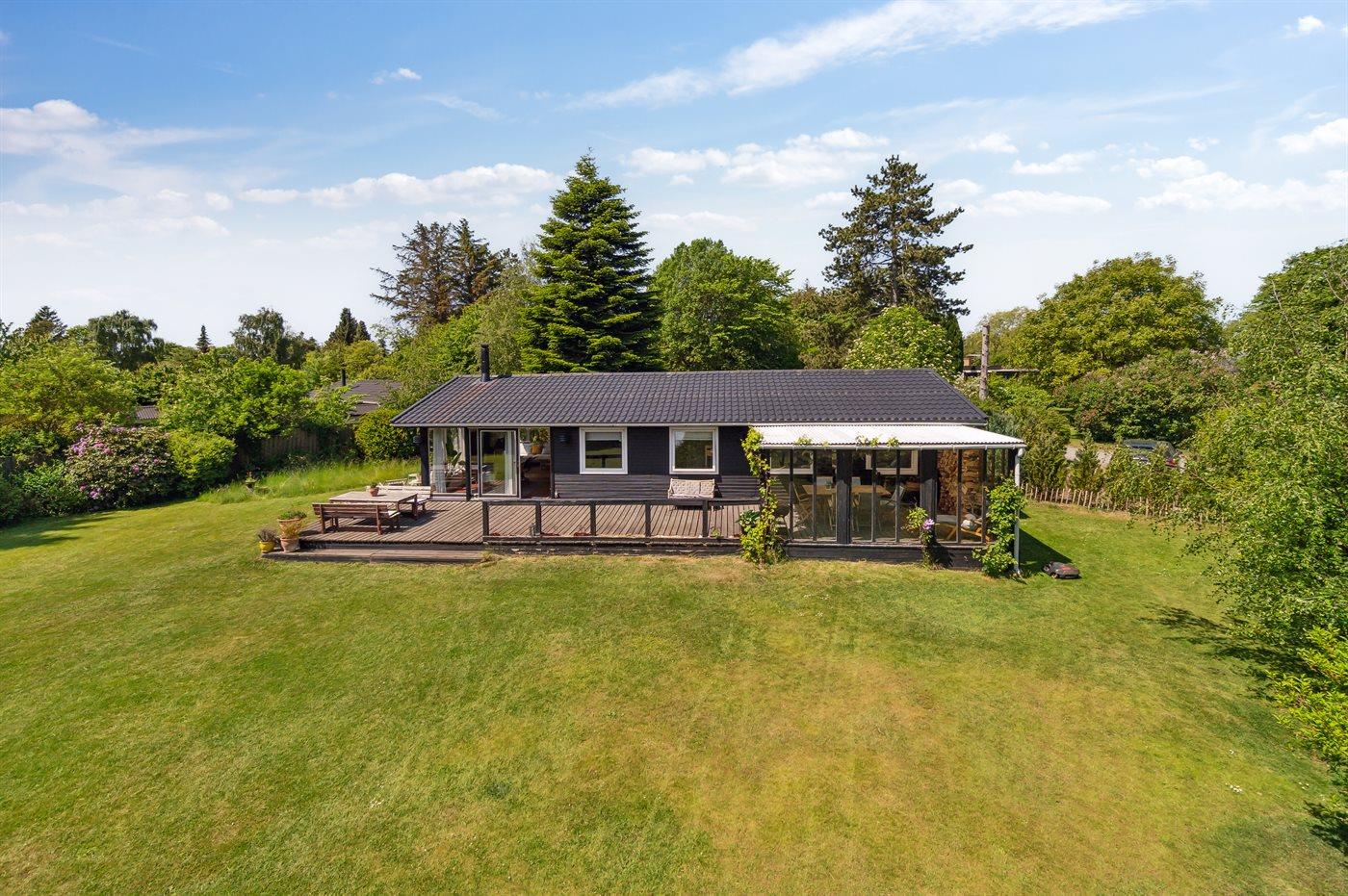Ferieboligen er beliggende på en 1200 m² stor havegrund. Der er 800 m til havet. Der er en badebro i nærheden. Nærmeste forretning er beliggende i en afstand af 1000 m. Der er en golfbane i en afstand af 7400 m. Til ferieboligen hører 40 m² terrasseareal. Desuden er der 15 m² overdækket terrasse. Grill til rådighed. Der er installeret stik til opladning af elbil. Parkering ved ferieboligen.
