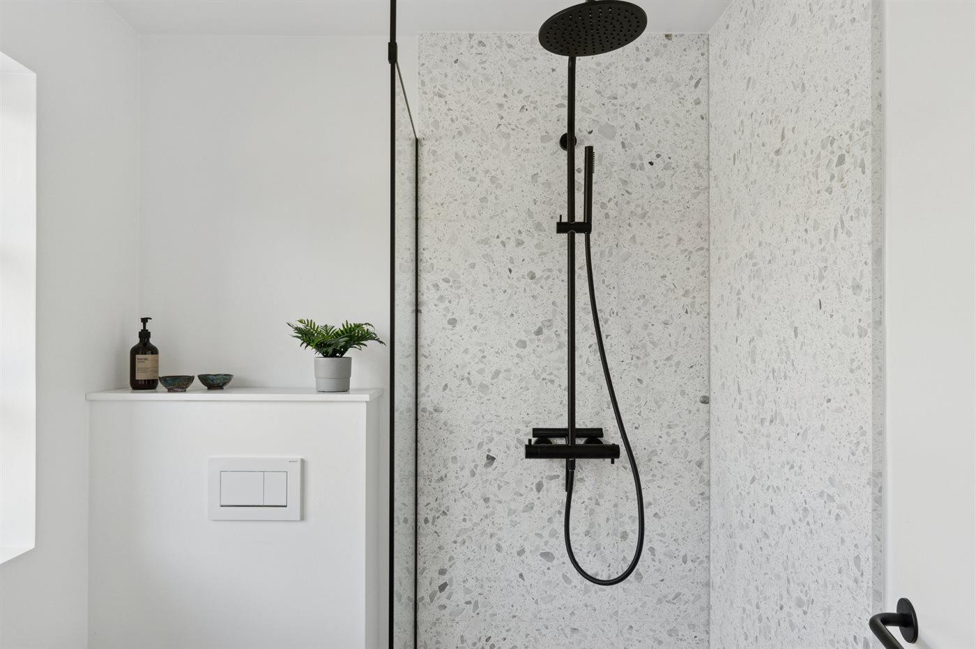 Der er 1 badeværelse med bruseniche og 1 toilet.