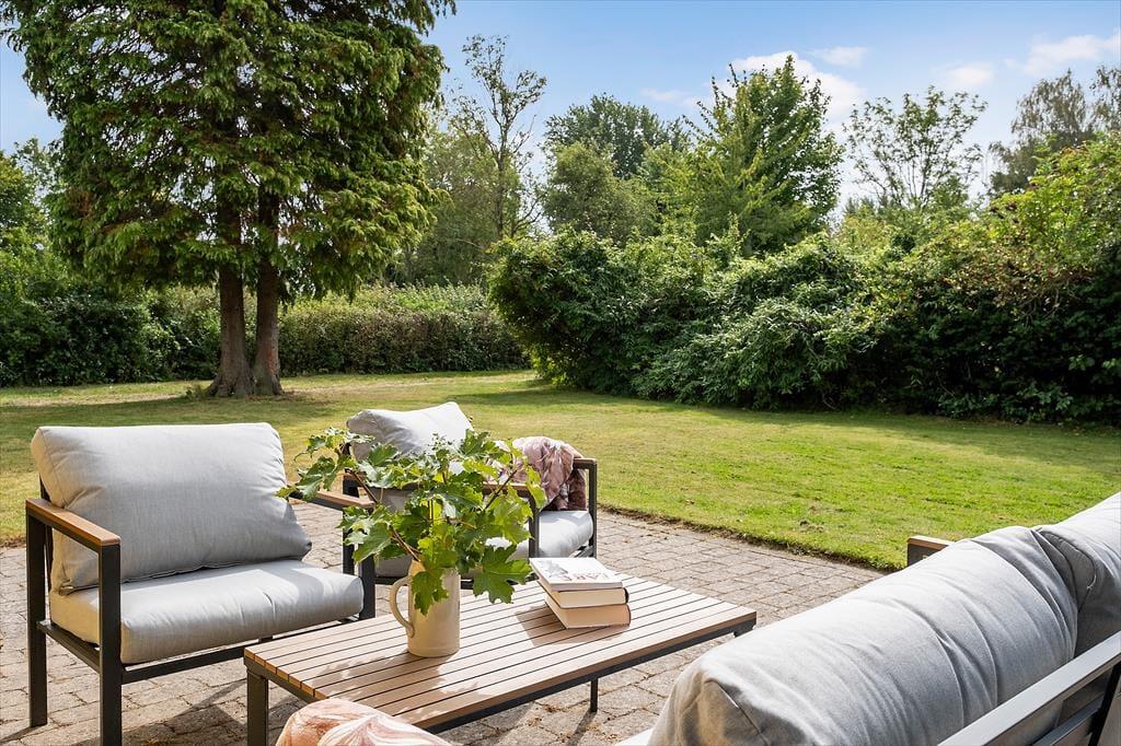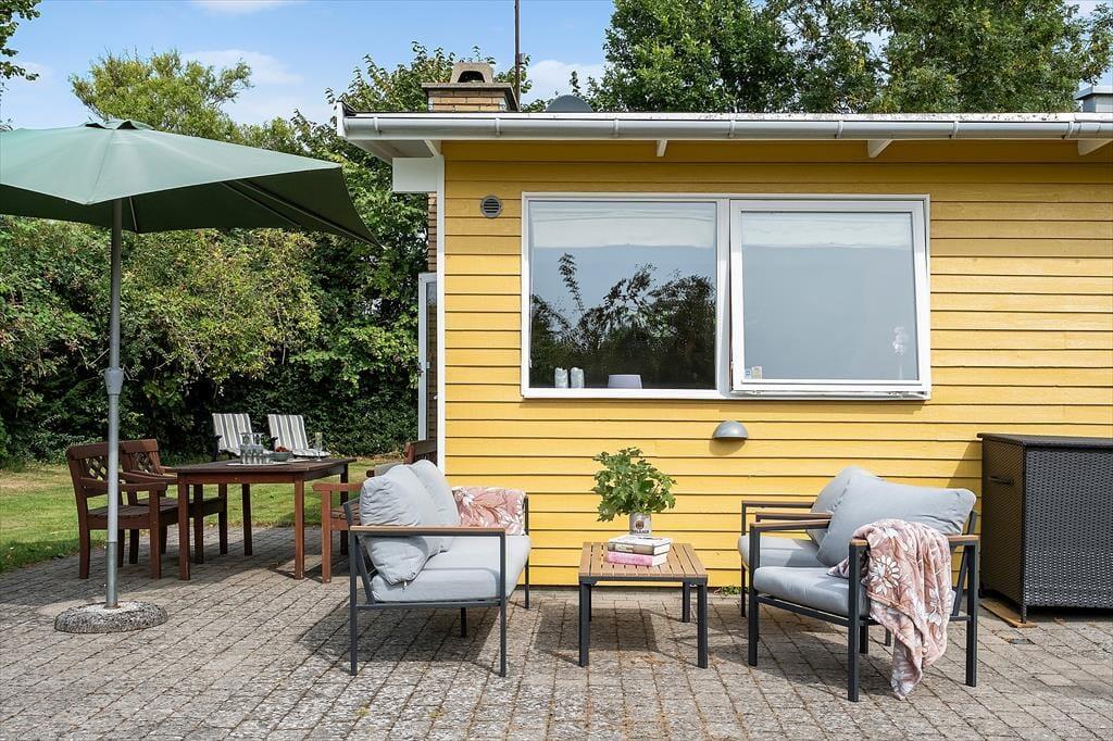 Udenfor breder en dejlig, stor grund sig med en frodig græsplæne, perfekt til leg og sjov for både børn og voksne. Terrassen er ideel til morgenkaffen eller stille stunder med en god bog, mens den friske havluft kærtegner dine sanser. Her kan I nyde det danske sommerliv, lytte til fuglenes kvidren og lade solen varme ansigtet. Med god plads til at samle familien til hyggelige stunder under åben himmel vil I med garanti føle jer hjemme i dette dejlige uderum, som indbyder til både leg og afslapning.