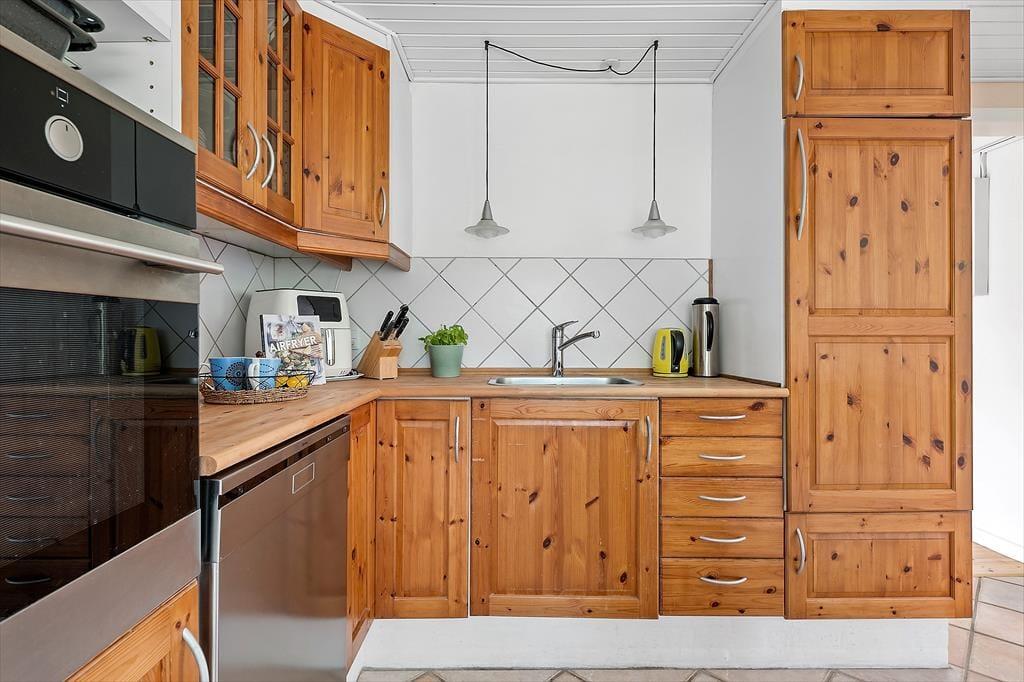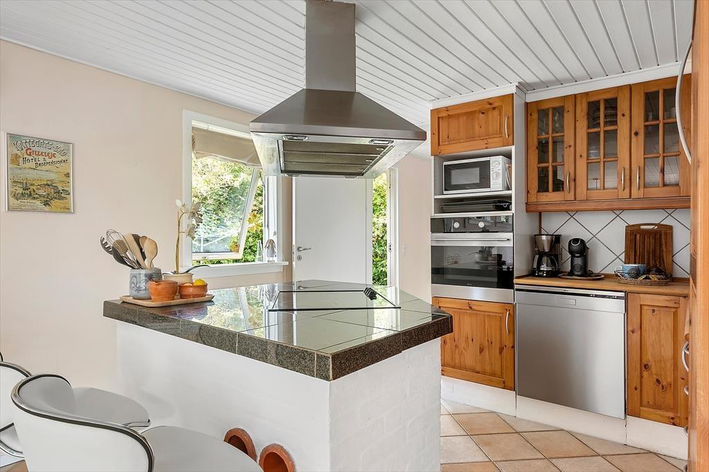 Træd ind i en lys og imødekommende atmosfære, hvor det rummelige køkken danner ramme om familiens måltider og hyggelige stunder. Køkkenet er åbent og indbydende med en spisestue, der inviterer til lange, hyggelige middage, hvor snakken flyder let. I den dejlige opholdsstue kan I slappe af på de komfortable møbler, mens brændeovnen sprutter blidt og skaber en varm og hyggelig stemning. Fra opholdsstuen har I direkte adgang til terrassen, hvor I kan nyde morgenkaffen under åben himmel.